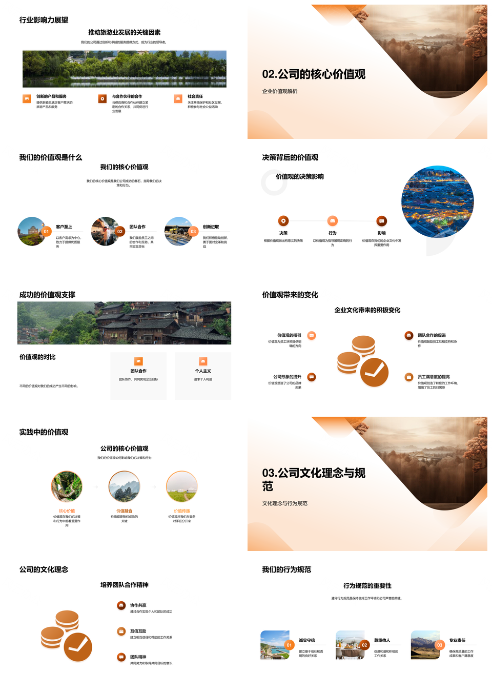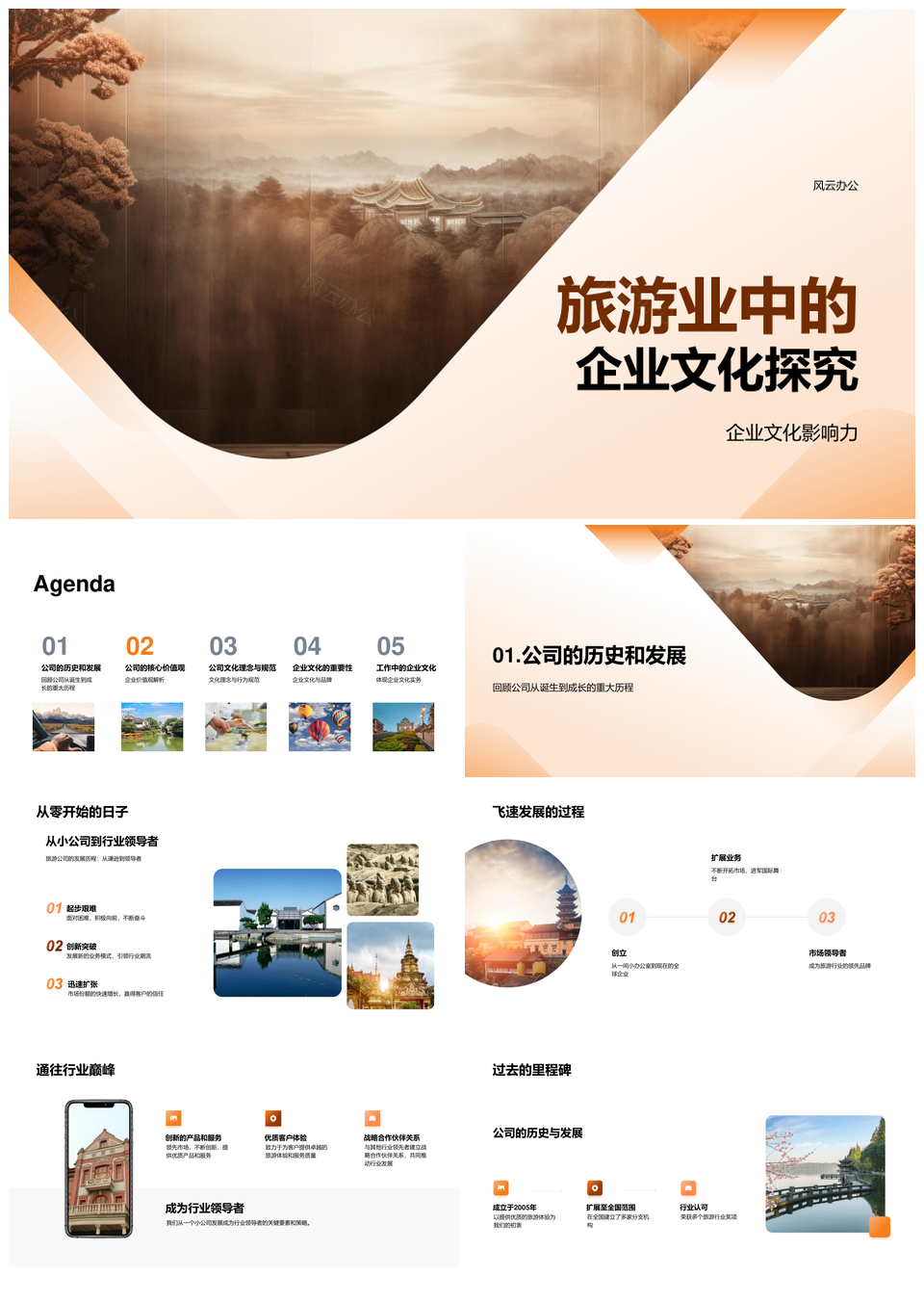 风云办公提供的旅企文化培训与古建品牌形象构建PPT模板,下载格式为pptx,一共33页,作品中文字及图均可以修改和编辑,图片更改请在作品中右键图片并更换,文字修改请直接点击文字进行修改。