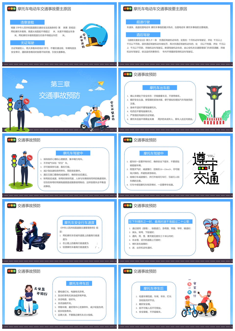 2025摩托车电动车骑车安全红绿灯警察头盔规范PPT模板推荐