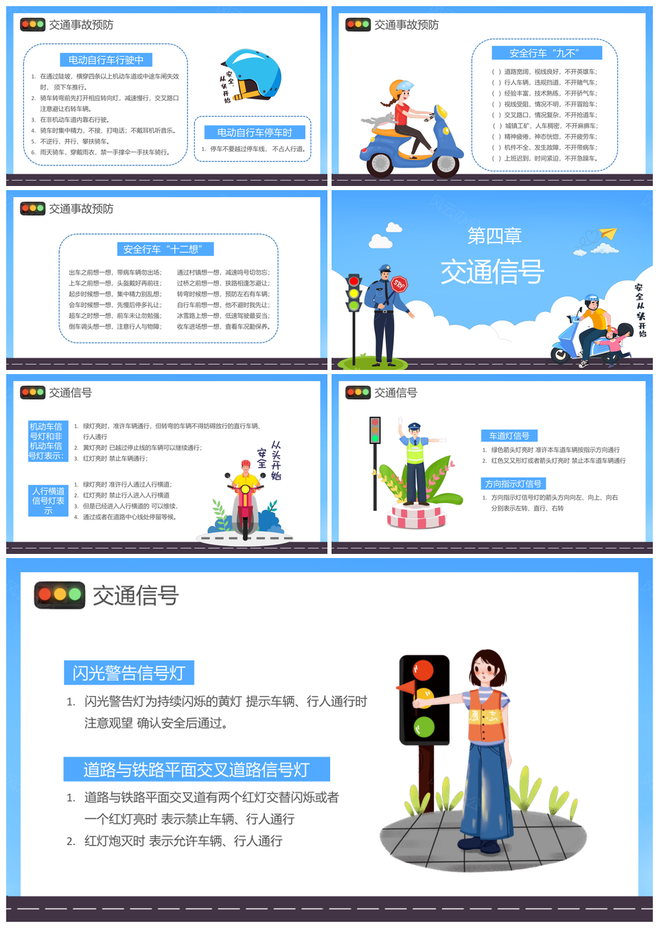 2025行车安全规则红绿灯骑行公交遇险报警PPT模板