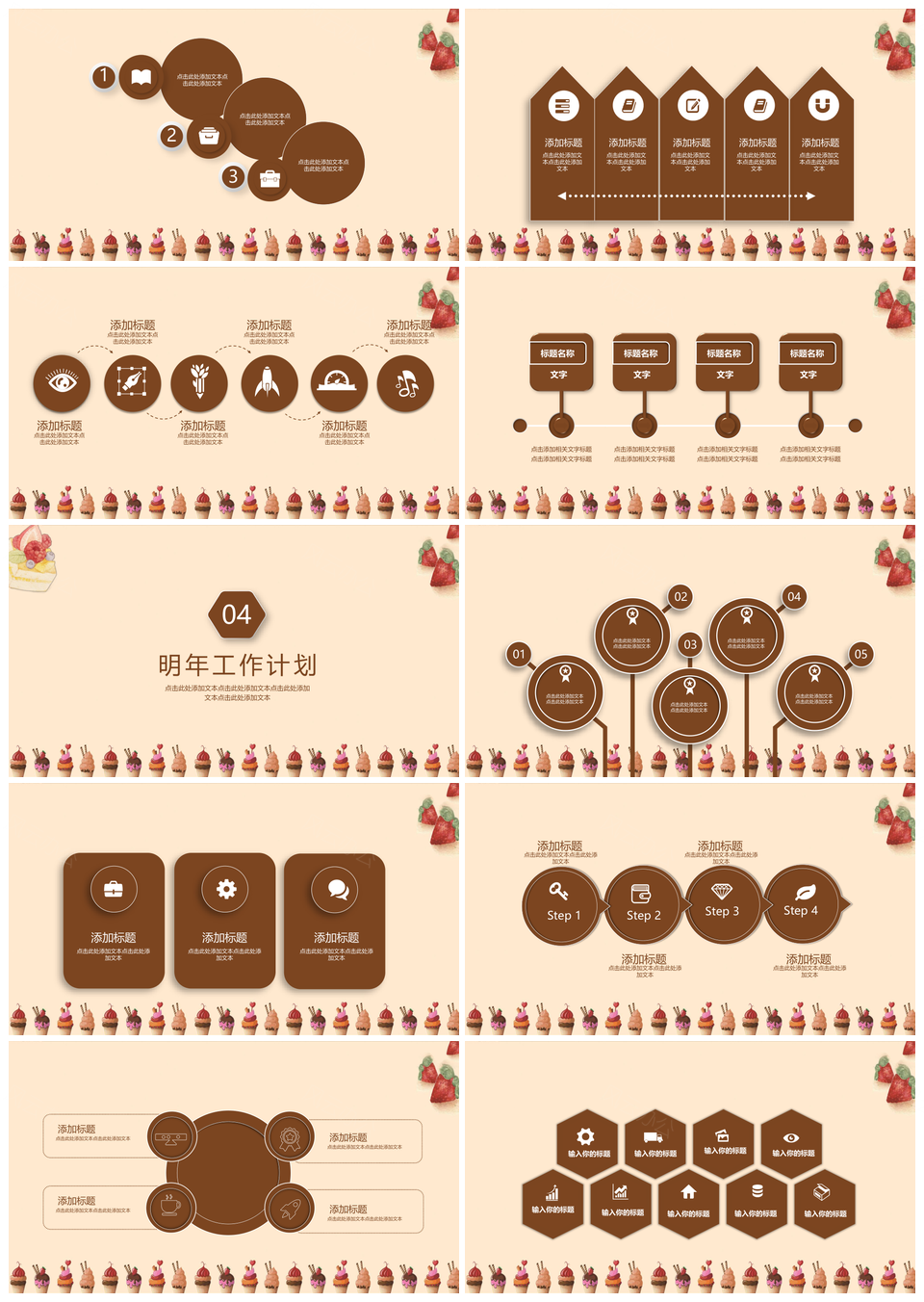 风云办公提供的甜品蛋糕活动计划营销方案PPT模板,下载格式为pptx,一共1页,作品中文字及图均可以修改和编辑,图片更改请在作品中右键图片并更换,文字修改请直接点击文字进行修改。