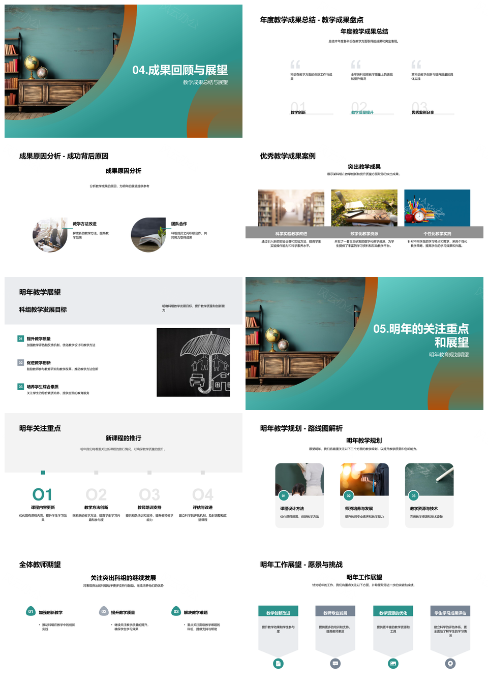 教学年度总结展望创新质量成果挑战策略案例PPT模板推荐