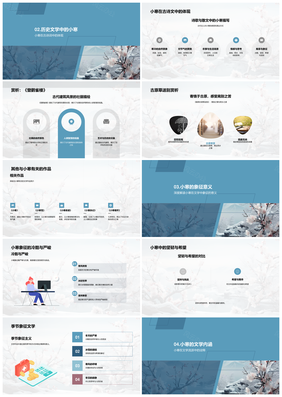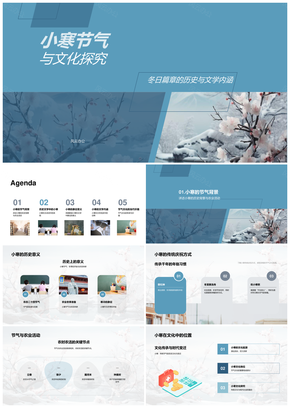 风云办公提供的小寒节气农俗文化古诗经典赏析PPT模板,下载格式为pptx,一共25页,作品中文字及图均可以修改和编辑,图片更改请在作品中右键图片并更换,文字修改请直接点击文字进行修改。