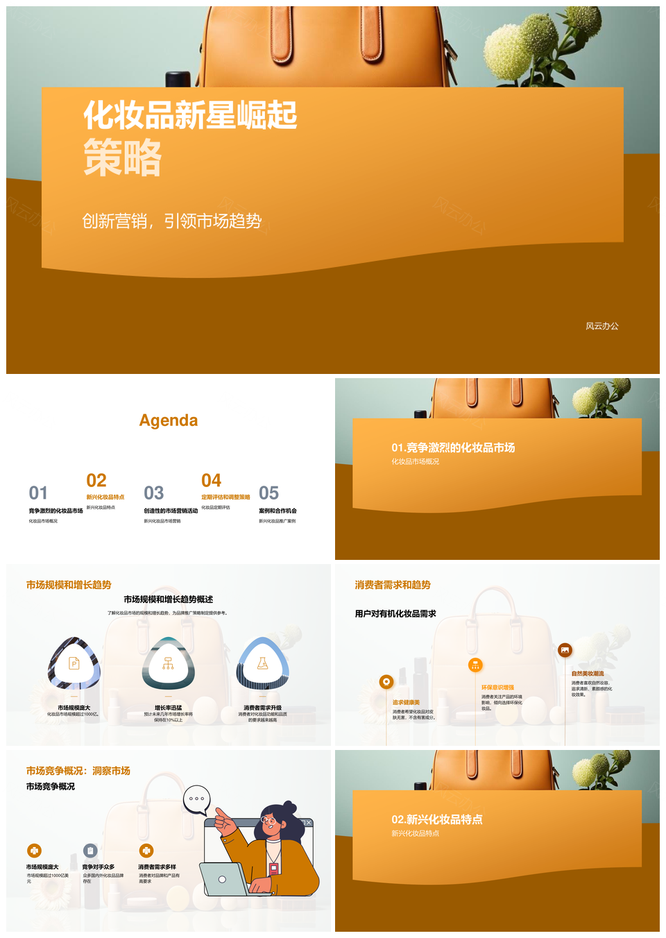 风云办公提供的化妆品新星崛起策略市场趋势竞争分析PPT模板,下载格式为pptx,一共23页,作品中文字及图均可以修改和编辑,图片更改请在作品中右键图片并更换,文字修改请直接点击文字进行修改。