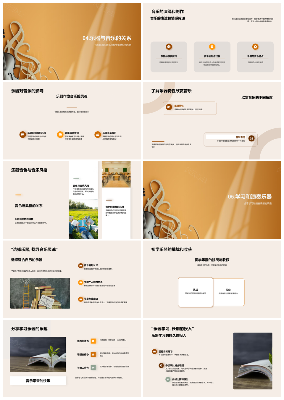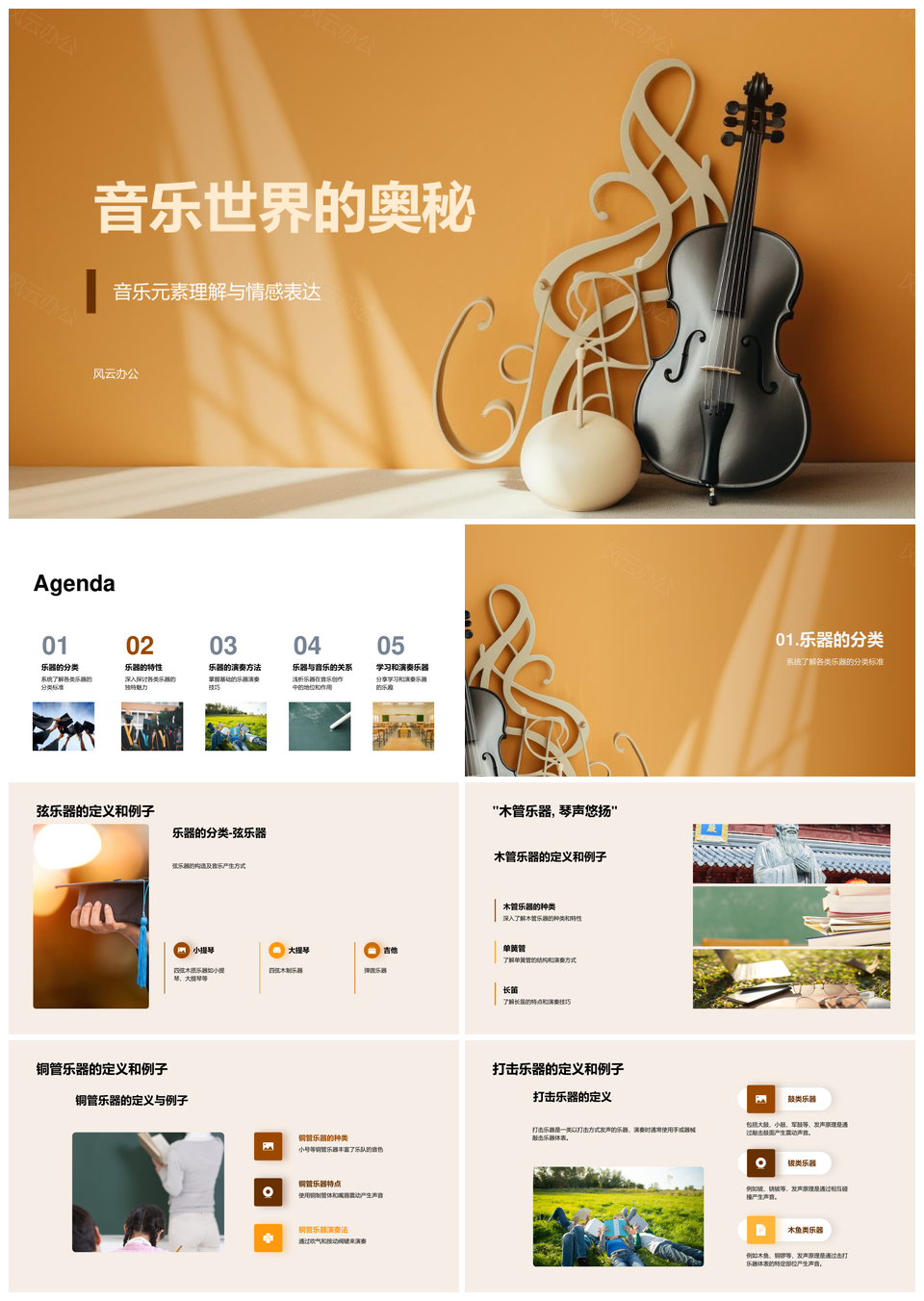 音乐世界奥秘乐器分类特性演奏方法符号PPT模板推荐
