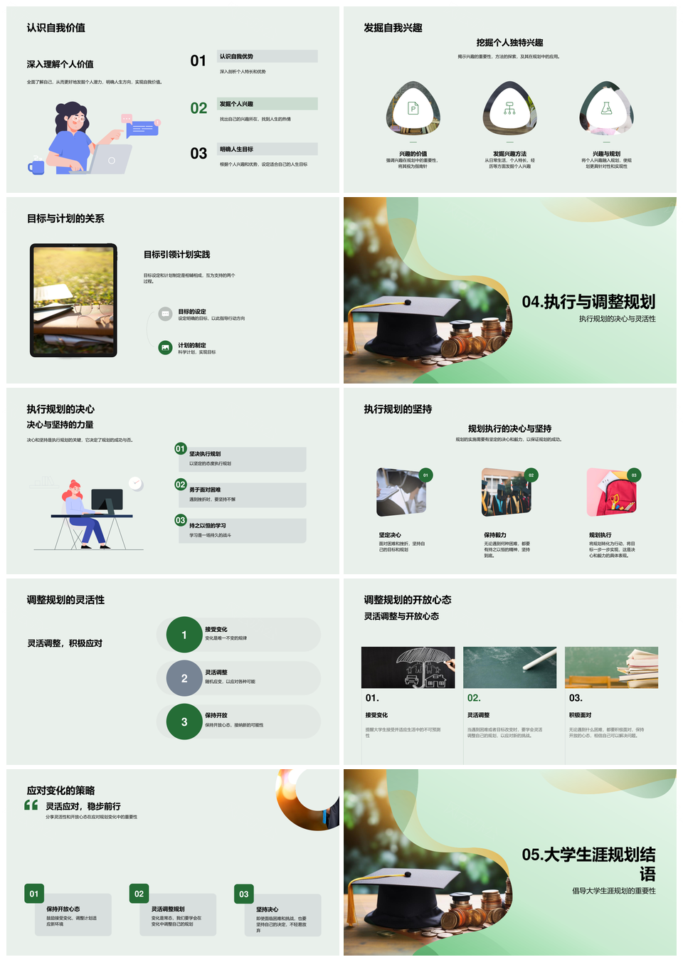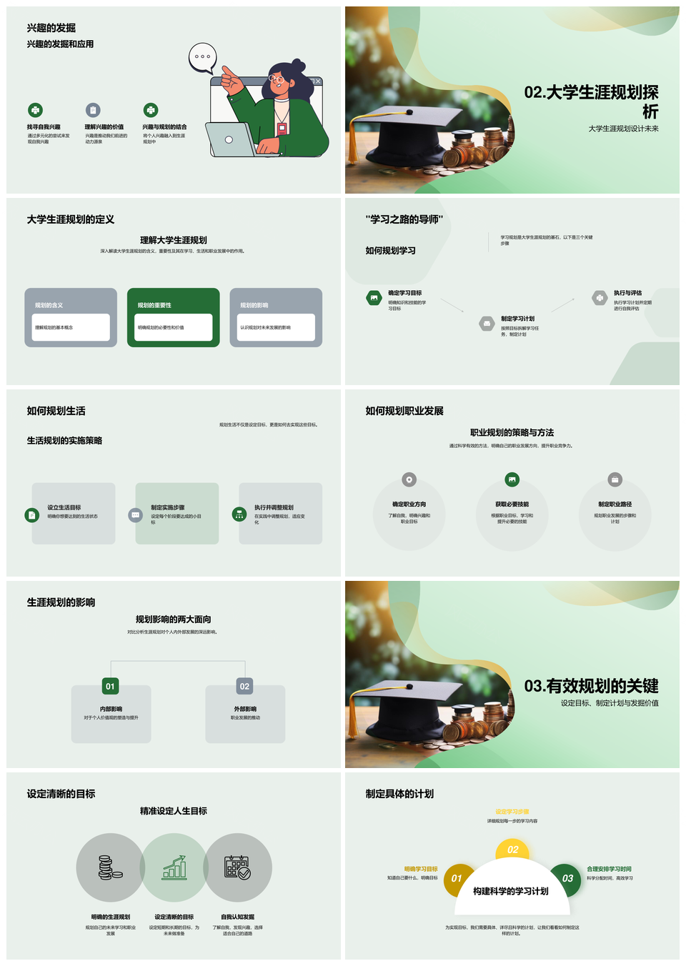 大学生涯规划教育指引兴趣目标导师毕业PPT模板推荐