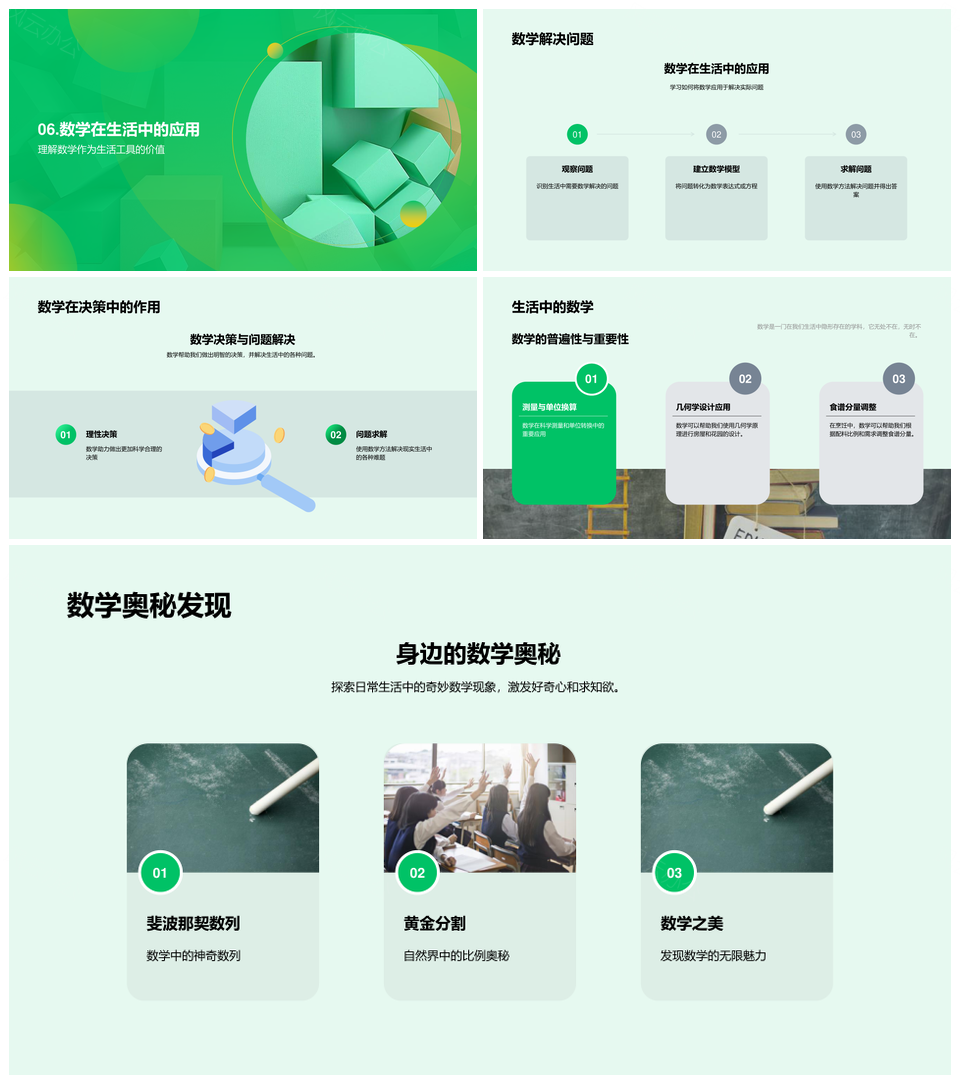 生活数学运用小学教育运算统计测量几何折扣PPT模板推荐