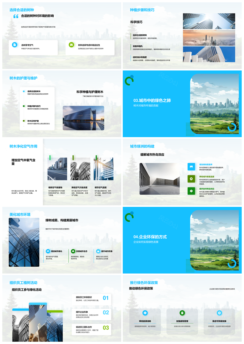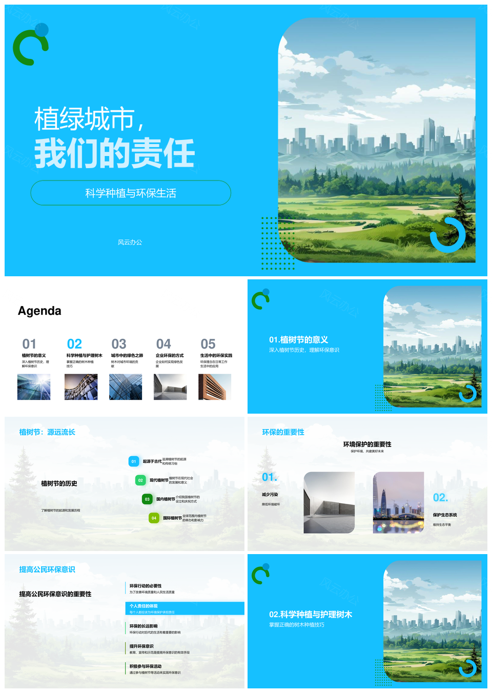 风云办公提供的科学植绿担责筑城市绿色天际线PPT模板,下载格式为pptx,一共23页,作品中文字及图均可以修改和编辑,图片更改请在作品中右键图片并更换,文字修改请直接点击文字进行修改。