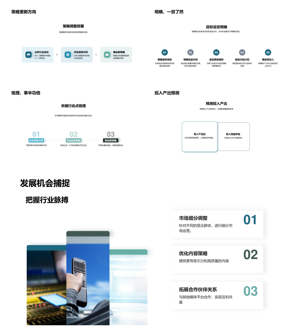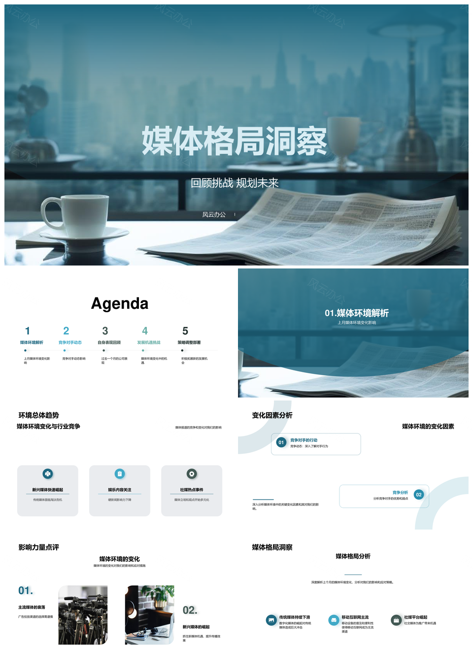 风云办公提供的媒体格局竞动态环境挑战策略部署PPT模板,下载格式为pptx,一共33页,作品中文字及图均可以修改和编辑,图片更改请在作品中右键图片并更换,文字修改请直接点击文字进行修改。