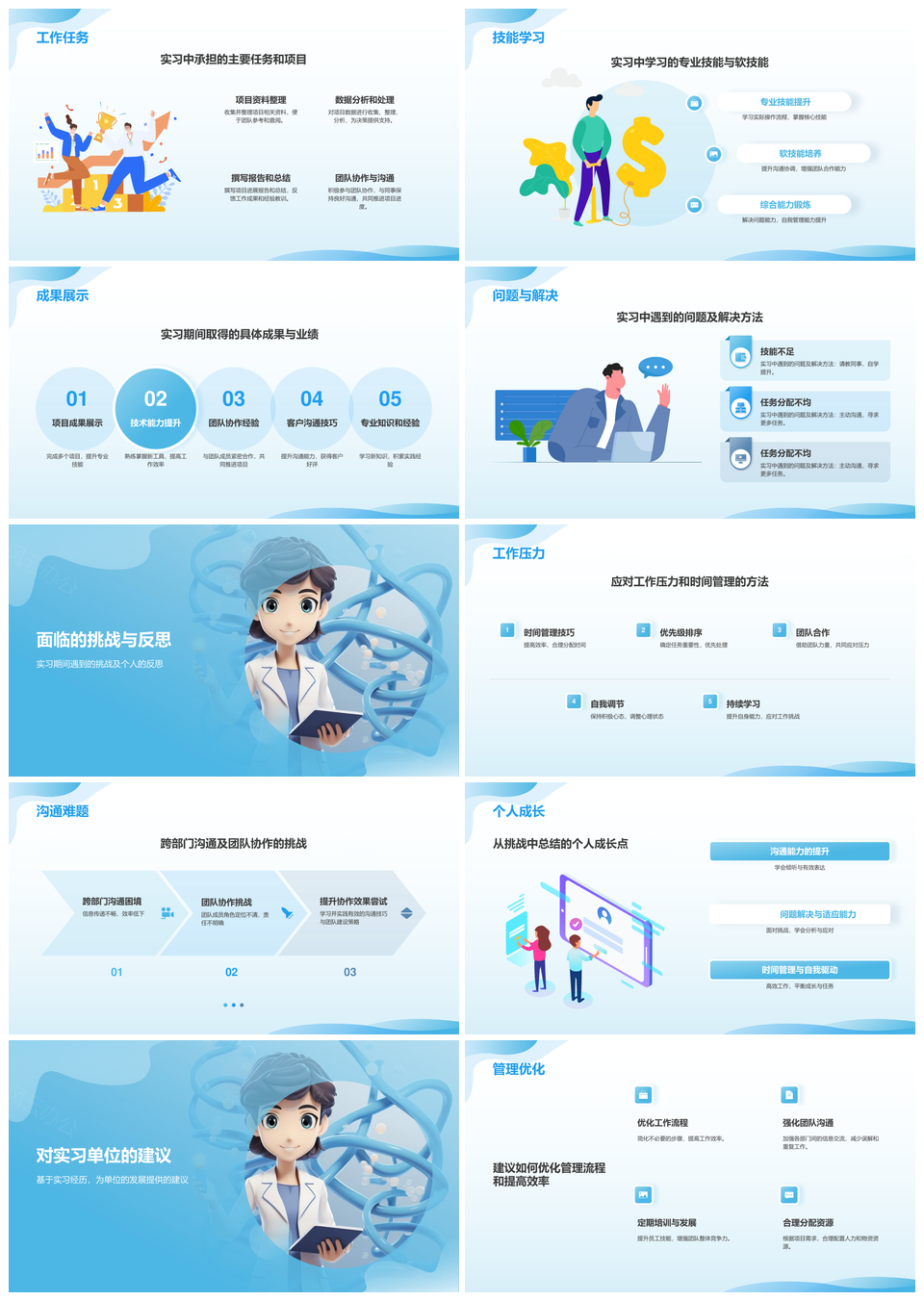 这是一张实习期工作学习收获汇报展示PPT模板,包含实习期、工作、学习、收获、汇报、展示等主题内容,也可用作实习期工作学习收获、实习期工作学习汇报、实习期工作学习展示、实习期工作收获汇报、实习期工作收获展示、实习期工作汇报展示、工作学习收获汇报展示、实习期学习收获汇报、实习期学习收获展示、实习期收获汇报展示、工作学习收获汇报、工作学习收获展示、工作学习汇报展示、学习收获汇报展示、汇报展示等PPT场景使用。