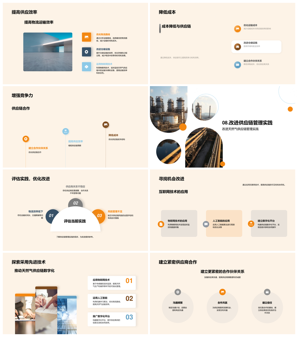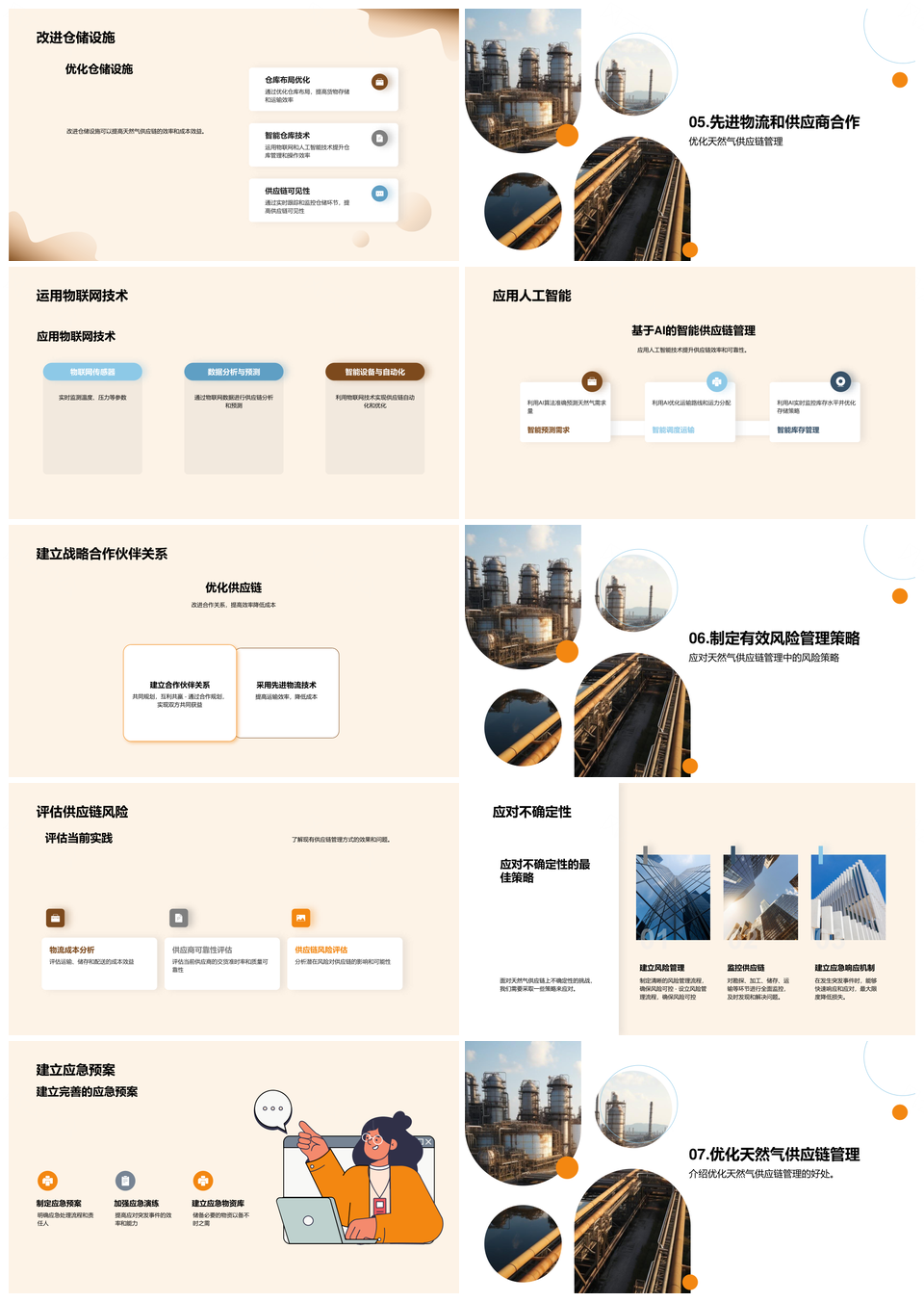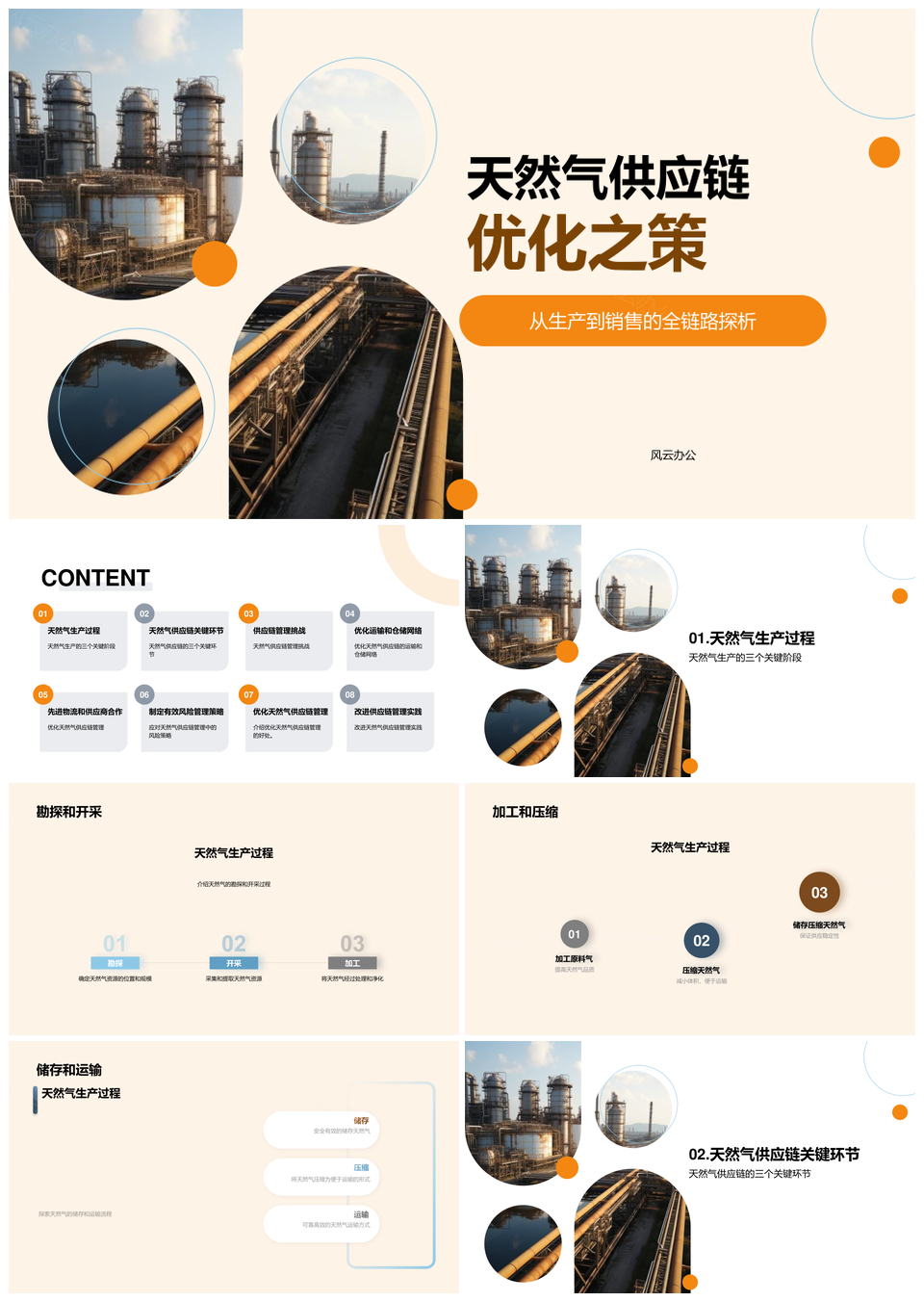 这是一张天然气勘探开采加工压缩管道供应链优化PPT模板,包含天然气、勘探、开采、加工、压缩、管道、供应链、优化等主题内容,也可用作天然气勘探开采加工压缩、天然气勘探开采加工、勘探开采加工压缩、开采加工压缩管道、加工压缩管道供应链、压缩管道供应链优化、天然气勘探开采、勘探开采加工、开采加工压缩、加工压缩管道、压缩管道供应链、管道供应链优化、天然气勘探、勘探开采、开采加工、加工压缩等PPT场景使用。 风云办公提供的天然气勘探开采加工压缩管道供应链优化PPT模板,下载格式为pptx,一共36页,作品中文字及图均可以修改和编辑,图片更改请在作品中右键图片并更换,文字修改请直接点击文字进行修改。