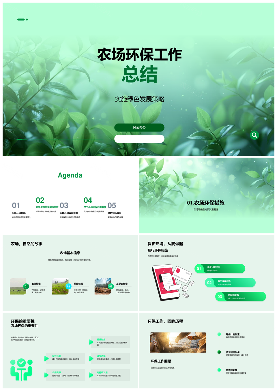 风云办公提供的农场环保措施与绿色发展策略总结PPT模板,下载格式为pptx,一共33页,作品中文字及图均可以修改和编辑,图片更改请在作品中右键图片并更换,文字修改请直接点击文字进行修改。