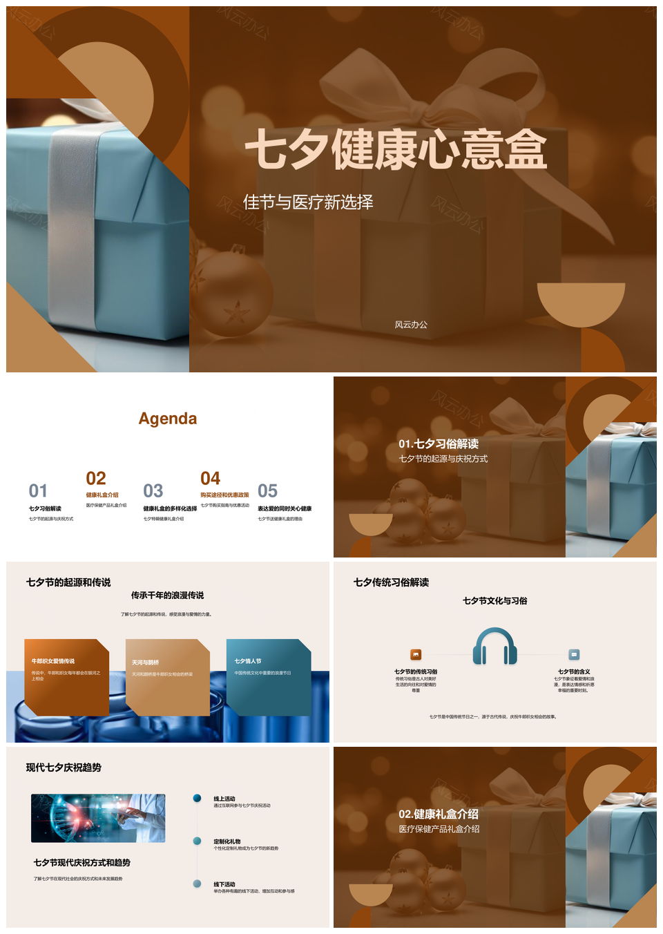 七夕医疗保健新品健康礼品盒发布会PPT模板