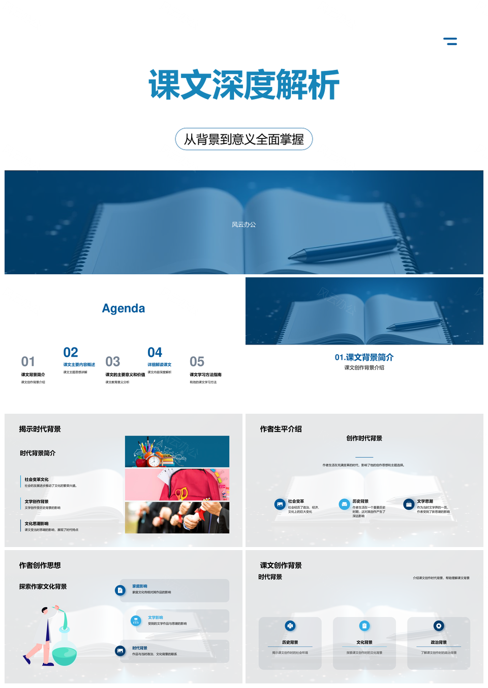 风云办公提供的初中课文背景作者主题教育文化解析PPT模板,下载格式为pptx,一共33页,作品中文字及图均可以修改和编辑,图片更改请在作品中右键图片并更换,文字修改请直接点击文字进行修改。