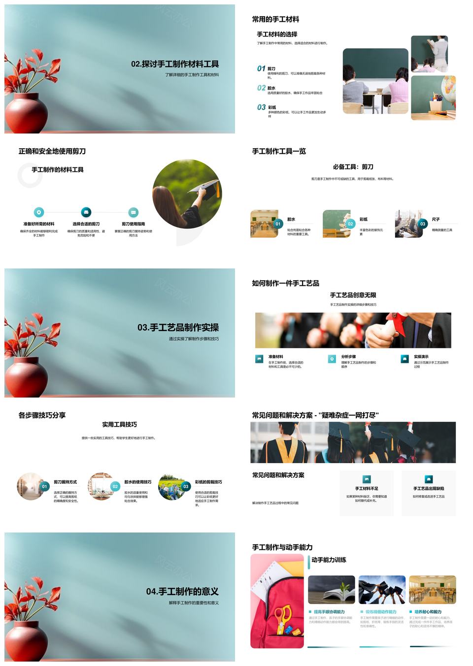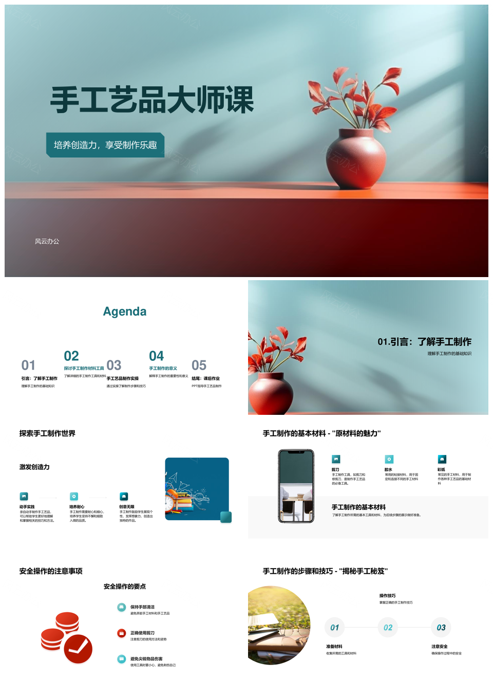 这是一张手工艺品大师课手工制作技巧工具安全操作PPT模板,包含手工艺品、大师课、手工制作、技巧、工具、安全操作等主题内容,也可用作手工艺品大师课手工制作技巧工具、大师课手工制作技巧工具安全操作、手工制作技巧工具安全操作、手工艺品大师课手工制作、手工艺品大师课技巧工具、大师课手工制作技巧工具、手工艺品技巧工具安全操作、手工制作技巧工具安全操作、手工艺品大师课技巧工具、大师课手工制作技巧工具、手工制作工具安全操作、手工艺品大师课、手工制作技巧、工具安全操作、大师课手工制作等PPT场景使用。 风云办公提供的手工艺品大师课手工制作技巧工具安全操作PPT模板,下载格式为pptx,一共23页,作品中文字及图均可以修改和编辑,图片更改请在作品中右键图片并更换,文字修改请直接点击文字进行修改。