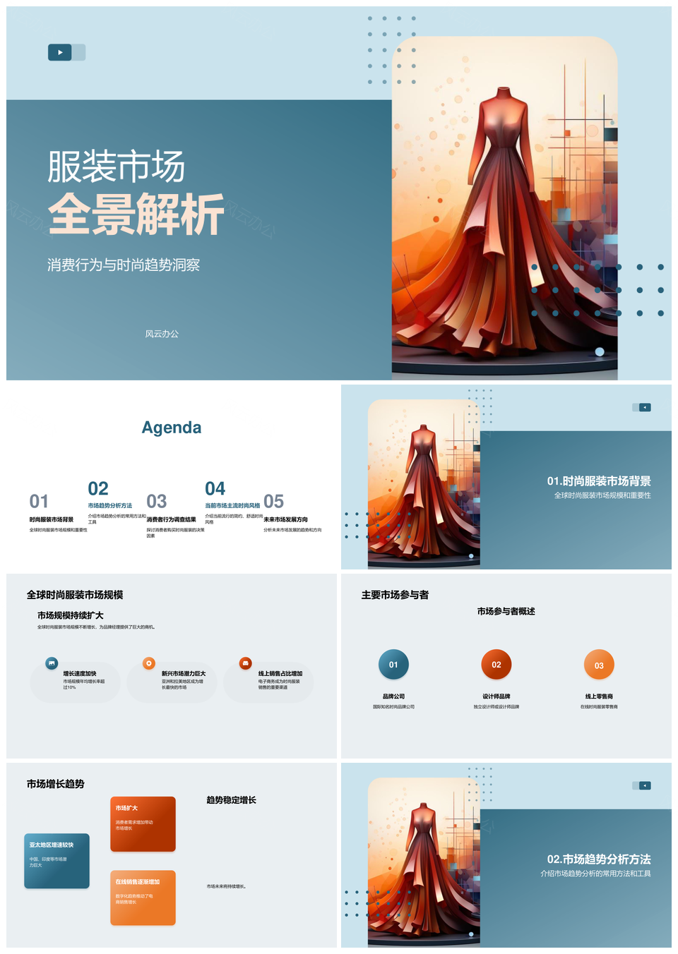这是一张时尚服装市场趋势分析增长预测研究方法PPT模板,包含时尚服装、市场趋势、分析、增长、预测、研究方法等主题内容,也可用作时尚服装市场趋势、服装市场趋势分析、市场趋势分析增长、趋势分析增长预测、分析增长预测研究、增长预测研究方法、时尚服装市场、服装市场趋势、市场趋势分析、趋势分析增长、分析增长预测、增长预测研究、预测研究方法、时尚服装、服装市场、市场趋势等PPT场景使用。 风云办公提供的时尚服装市场趋势分析增长预测研究方法PPT模板,下载格式为pptx,一共24页,作品中文字及图均可以修改和编辑,图片更改请在作品中右键图片并更换,文字修改请直接点击文字进行修改。
