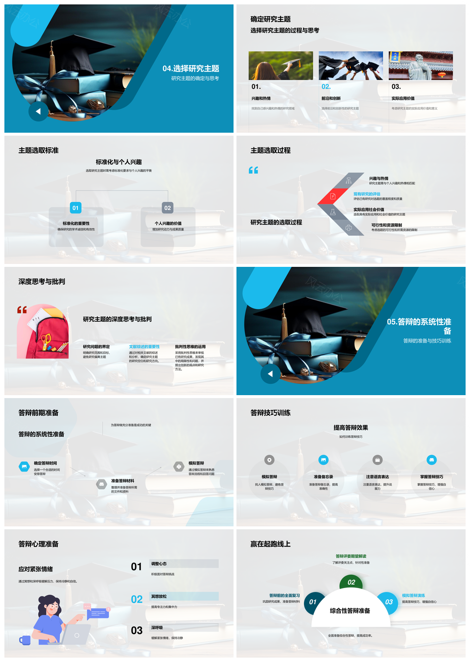 答辩技巧流程时间管理委员会聆听应对研究展示PPT模板