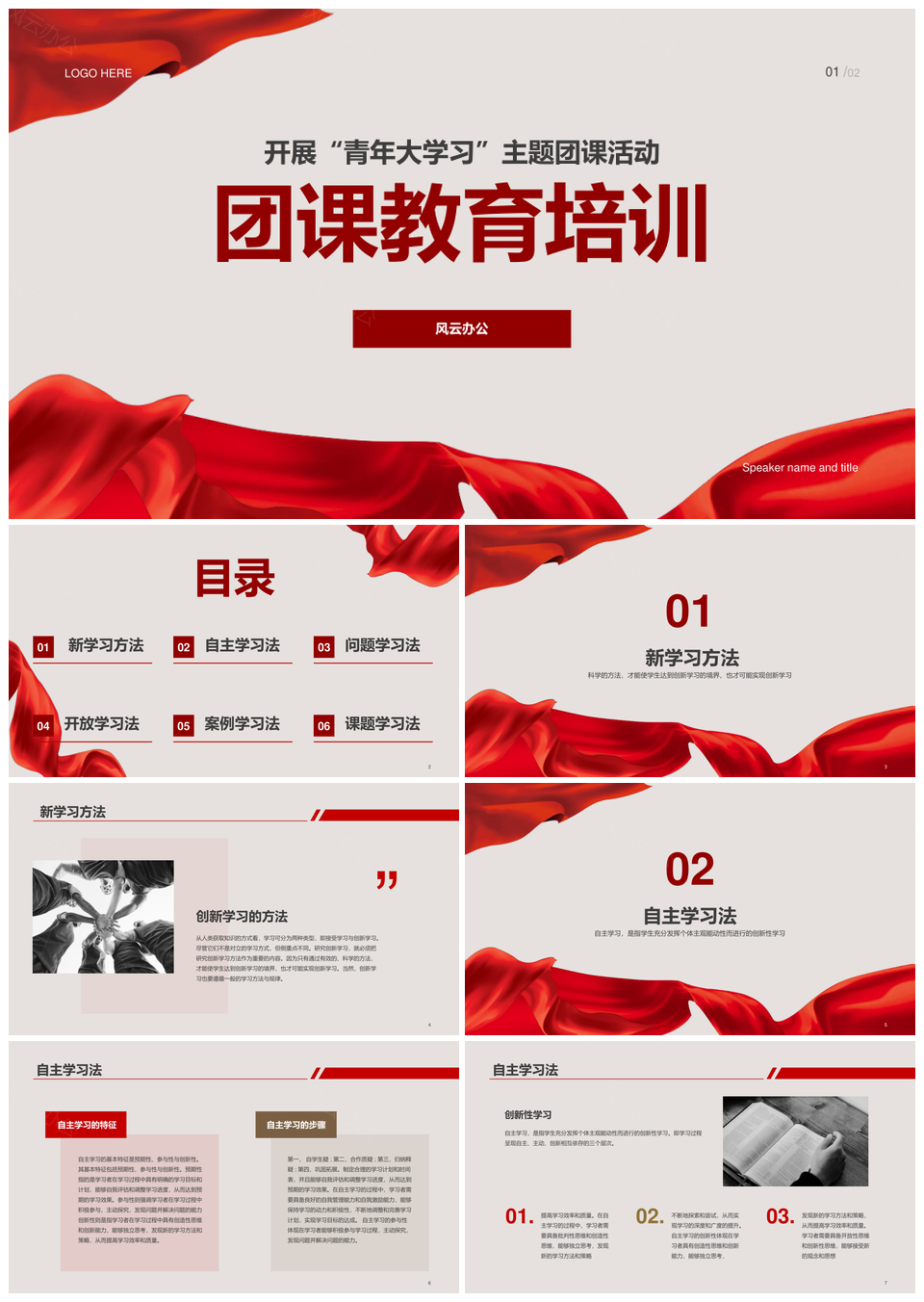 风云办公提供的红色团课创新团组织团员教育培训PPT模板,下载格式为pptx,一共22页,作品中文字及图均可以修改和编辑,图片更改请在作品中右键图片并更换,文字修改请直接点击文字进行修改。