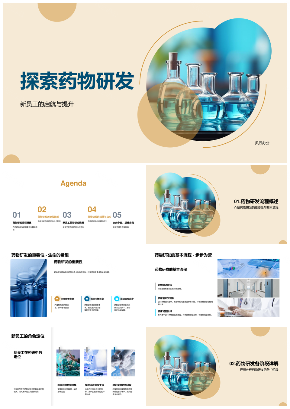 风云办公提供的新员工药物研发全阶段流程与角色定位PPT模板,下载格式为pptx,一共24页,作品中文字及图均可以修改和编辑,图片更改请在作品中右键图片并更换,文字修改请直接点击文字进行修改。