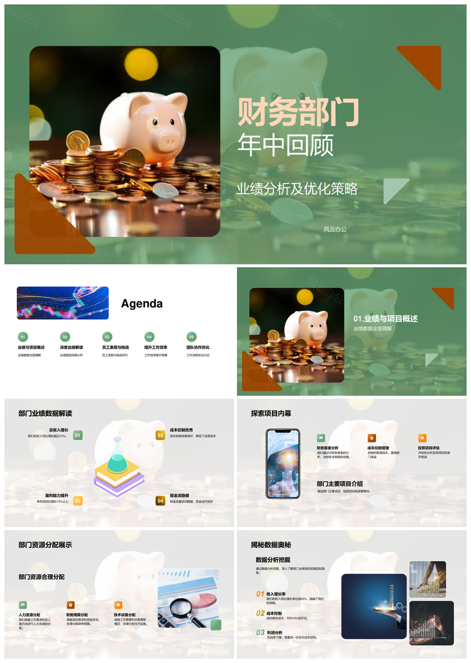 财务部门年中业绩数据解析与资源优化方案PPT模板推荐