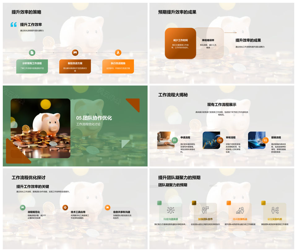 这款商务风PPT模板以浅绿与墨绿为主色调,传递沉稳与活力的视觉平衡,模板采用去冗余设计理念,借助极简布局与严谨逻辑呈现内容层次,确保信息直观表达。内嵌20+可编辑图表,涵盖数据对比、流程拆解、矩阵分析等商务场景,支持一键替换配色与图标。模块化架构便于快速调整版式,文字排版预留灵活修改空间,适配提案、汇报、发布会等专业场合。适合追求高效与品质的专业人士,用清晰视觉语言传递核心价值。