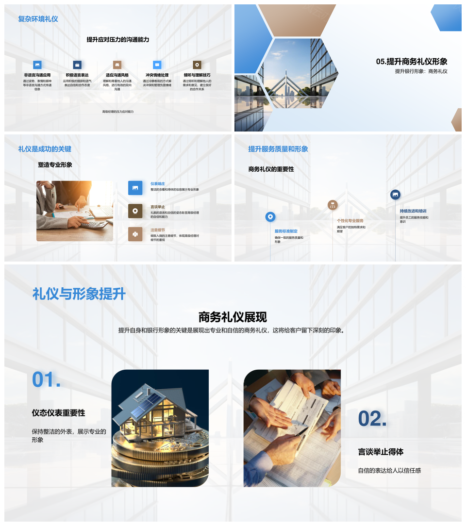 这是一张银行经理商务礼仪提升形象服务质量PPT模板,包含银行经理、商务礼仪、提升、形象、服务、质量等主题内容,也可用作银行经理商务礼仪、经理商务礼仪提升、商务礼仪提升形象、礼仪提升形象服务、提升形象服务质量、银行经理商务、经理商务礼仪、商务礼仪提升、礼仪提升形象、提升形象服务、形象服务质量、银行经理、经理商务、商务礼仪、礼仪提升等PPT场景使用。