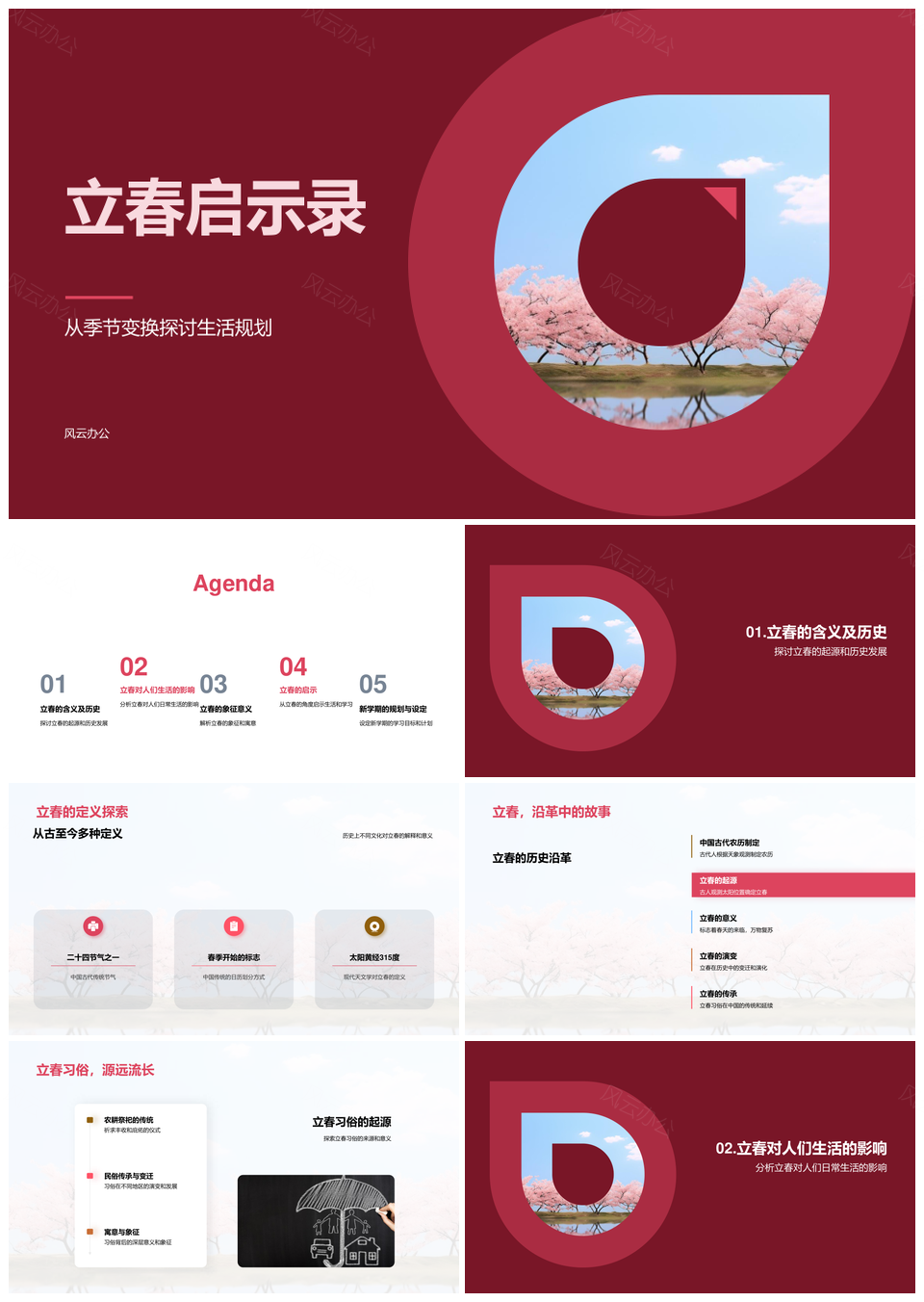 风云办公提供的立春农耕习俗启新年生活规划PPT模板,下载格式为pptx,一共23页,作品中文字及图均可以修改和编辑,图片更改请在作品中右键图片并更换,文字修改请直接点击文字进行修改。