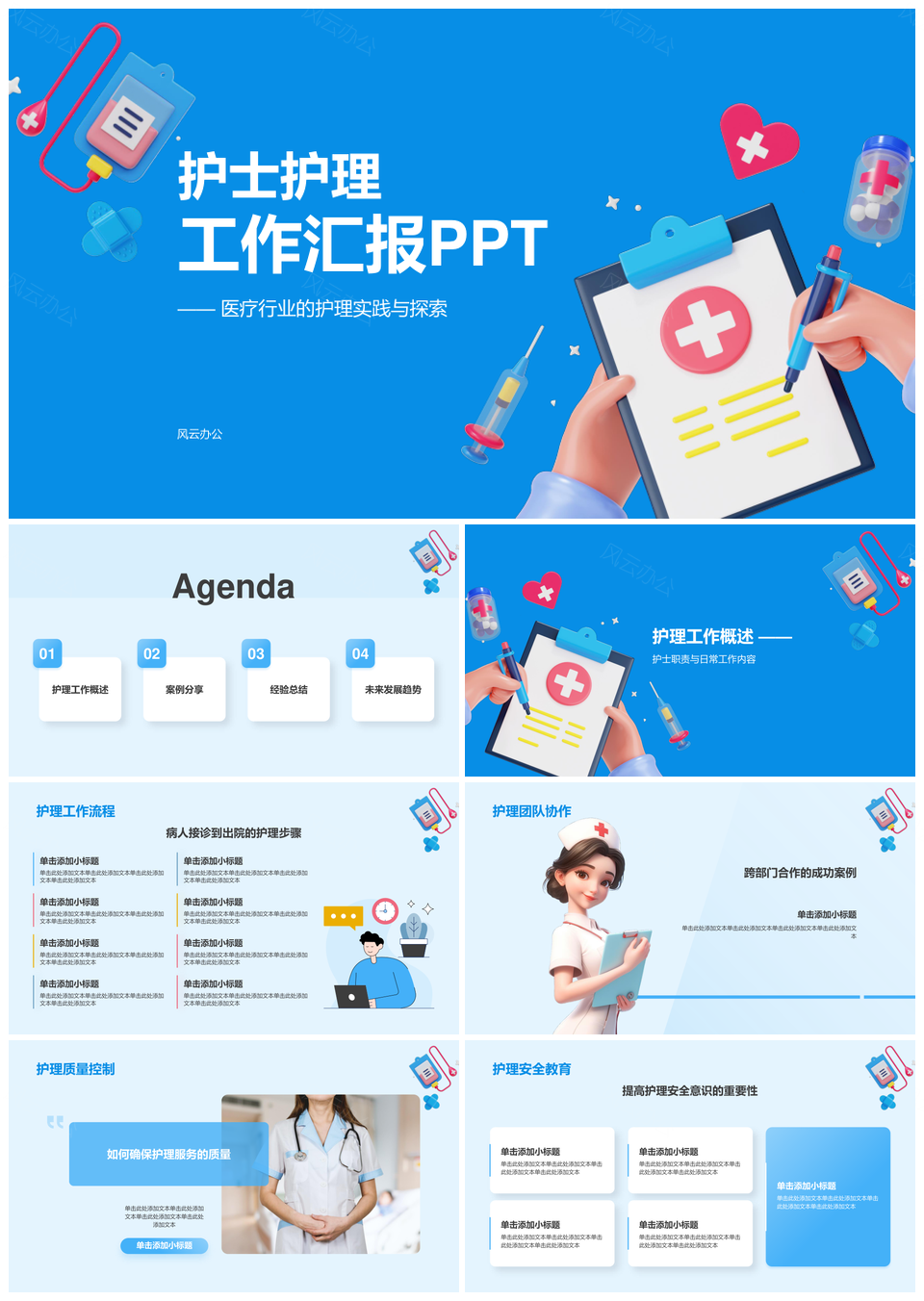 风云办公提供的护士医疗健康药检关爱工作汇报PPT模板,下载格式为pptx,一共22页,作品中文字及图均可以修改和编辑,图片更改请在作品中右键图片并更换,文字修改请直接点击文字进行修改。