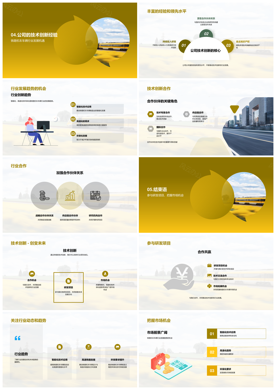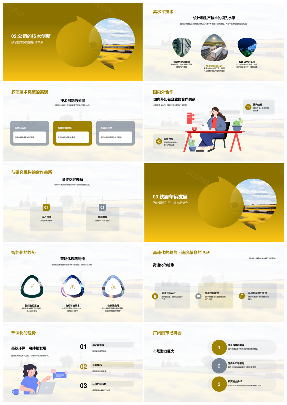 风云办公提供的铁路机车技术创新提升行业竞争力PPT模板,下载格式为pptx,一共28页,作品中文字及图均可以修改和编辑,图片更改请在作品中右键图片并更换,文字修改请直接点击文字进行修改。