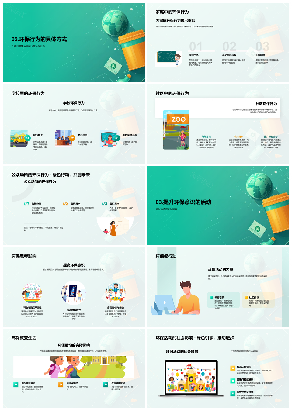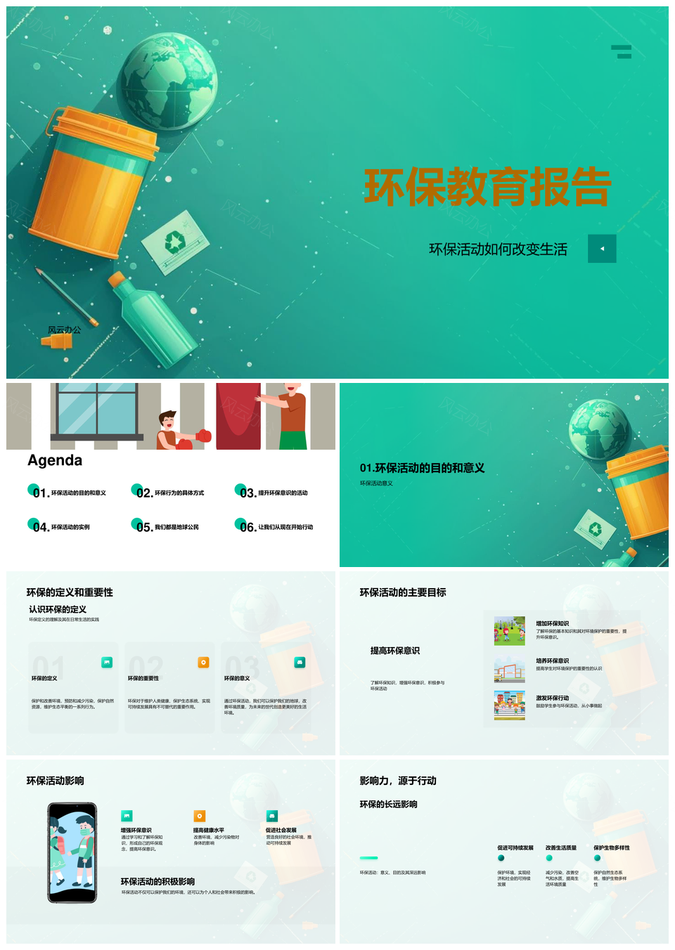 这是一张环保教育活动目标影响及家庭学校社区行为报告PPT模板,包含环保教育活动、目标、影响、家庭、学校、社区、行为、报告等主题内容,也可用作环保教育活动目标影响、家庭学校社区行为报告、环保教育目标影响、活动目标影响家庭、环保教育活动家庭、家庭学校社区行为、目标影响家庭社区、环保教育学校社区、教育活动影响家庭、活动目标学校社区、环保活动家庭学校、教育家庭学校社区、目标家庭学校社区、影响家庭学校社区、活动家庭学校社区等PPT场景使用。 风云办公提供的环保教育活动目标影响及家庭学校社区行为报告PPT模板,下载格式为pptx,一共33页,作品中文字及图均可以修改和编辑,图片更改请在作品中右键图片并更换,文字修改请直接点击文字进行修改。