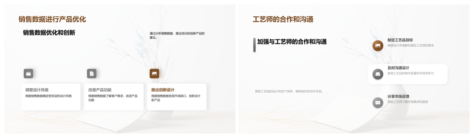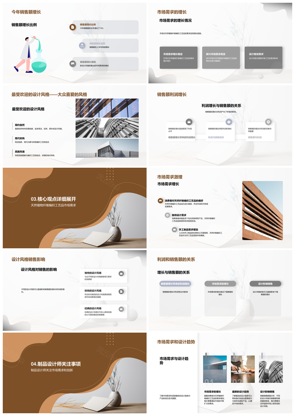 这是一张植物纤维工艺品创意设计销售增长总结汇报PPT模板,包含植物纤维、工艺品、创意、设计、销售增长、总结、汇报等主题内容,也可用作植物纤维工艺品创意设计、植物纤维工艺品创意、纤维工艺品创意设计销售、工艺品创意设计销售增长、创意设计销售增长总结、设计销售增长总结汇报、植物纤维工艺品创意设计、纤维工艺品创意设计销售、工艺品创意设计销售增长、创意设计销售增长总结、设计销售增长总结汇报、植物纤维工艺品、纤维工艺品创意、工艺品创意设计、创意设计销售等PPT场景使用。 风云办公提供的植物纤维工艺品创意设计销售增长总结汇报PPT模板,下载格式为pptx,一共20页,作品中文字及图均可以修改和编辑,图片更改请在作品中右键图片并更换,文字修改请直接点击文字进行修改。