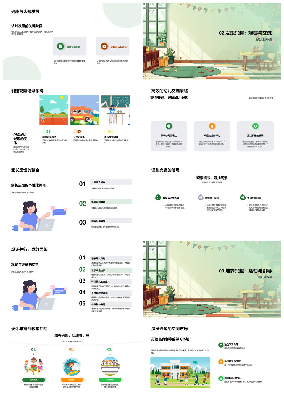 2025幼教兴趣培养策略实践早期观察沟通家长反馈PPT模板推荐