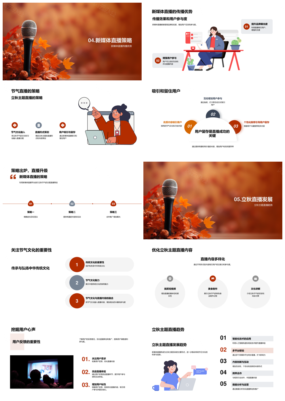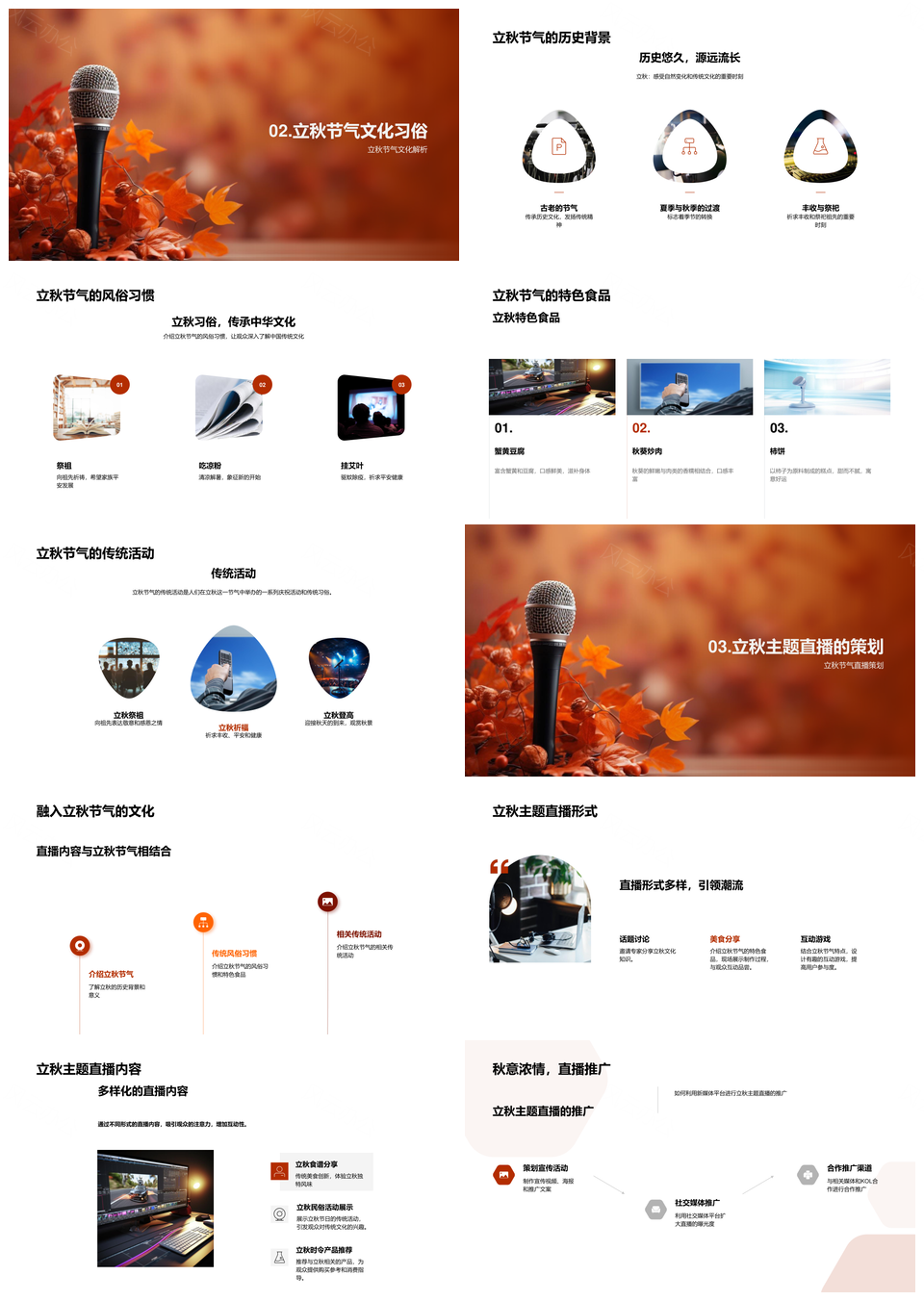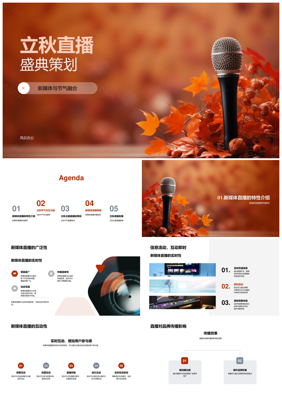 风云办公提供的立秋新媒体直播盛典节气融合品牌传播PPT模板,下载格式为pptx,一共28页,作品中文字及图均可以修改和编辑,图片更改请在作品中右键图片并更换,文字修改请直接点击文字进行修改。