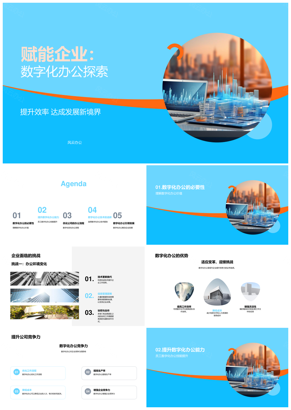 风云办公提供的数字化办公技术驱动企业竞争力提升PPT模板,下载格式为pptx,一共23页,作品中文字及图均可以修改和编辑,图片更改请在作品中右键图片并更换,文字修改请直接点击文字进行修改。