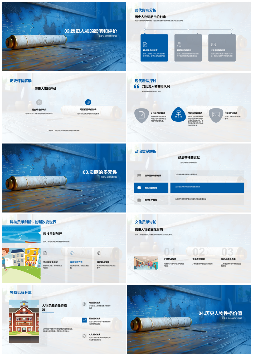 2025历史人物思想行为贡献影响力卷轴PPT模板