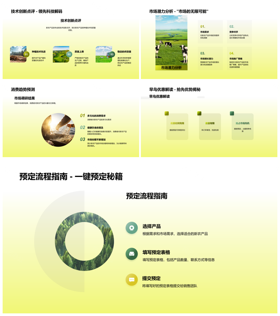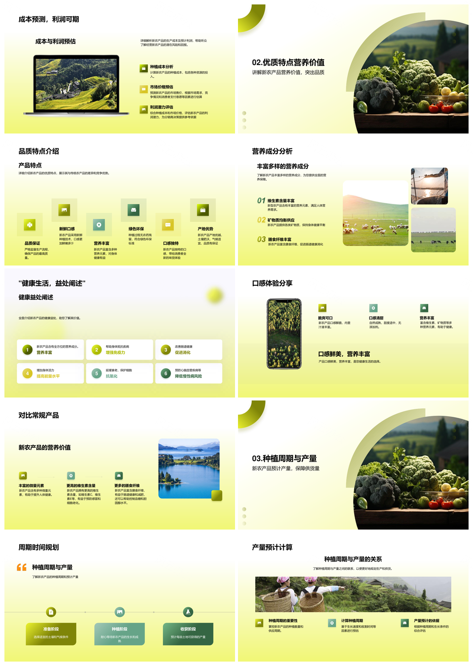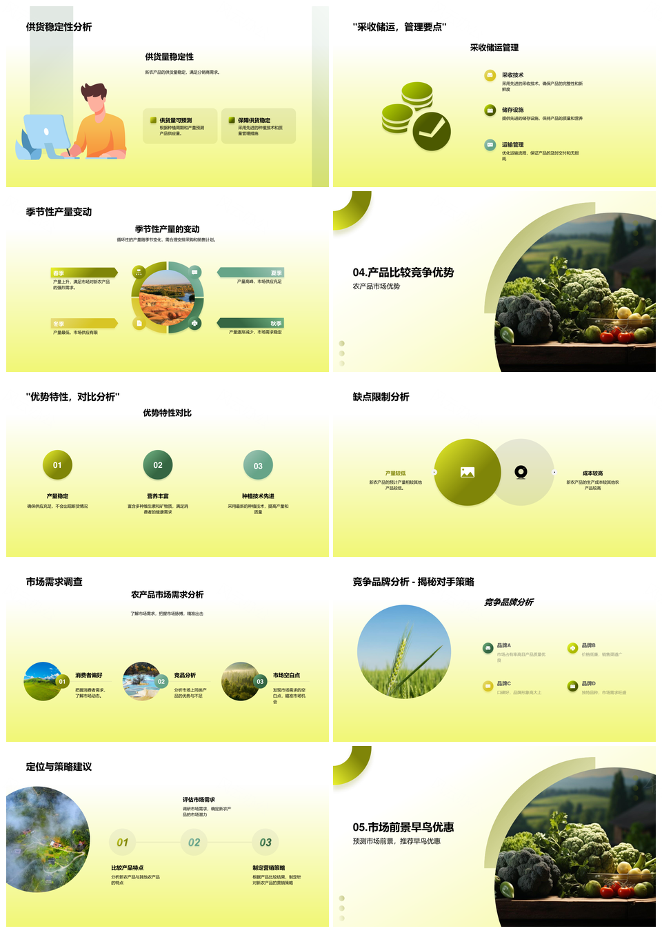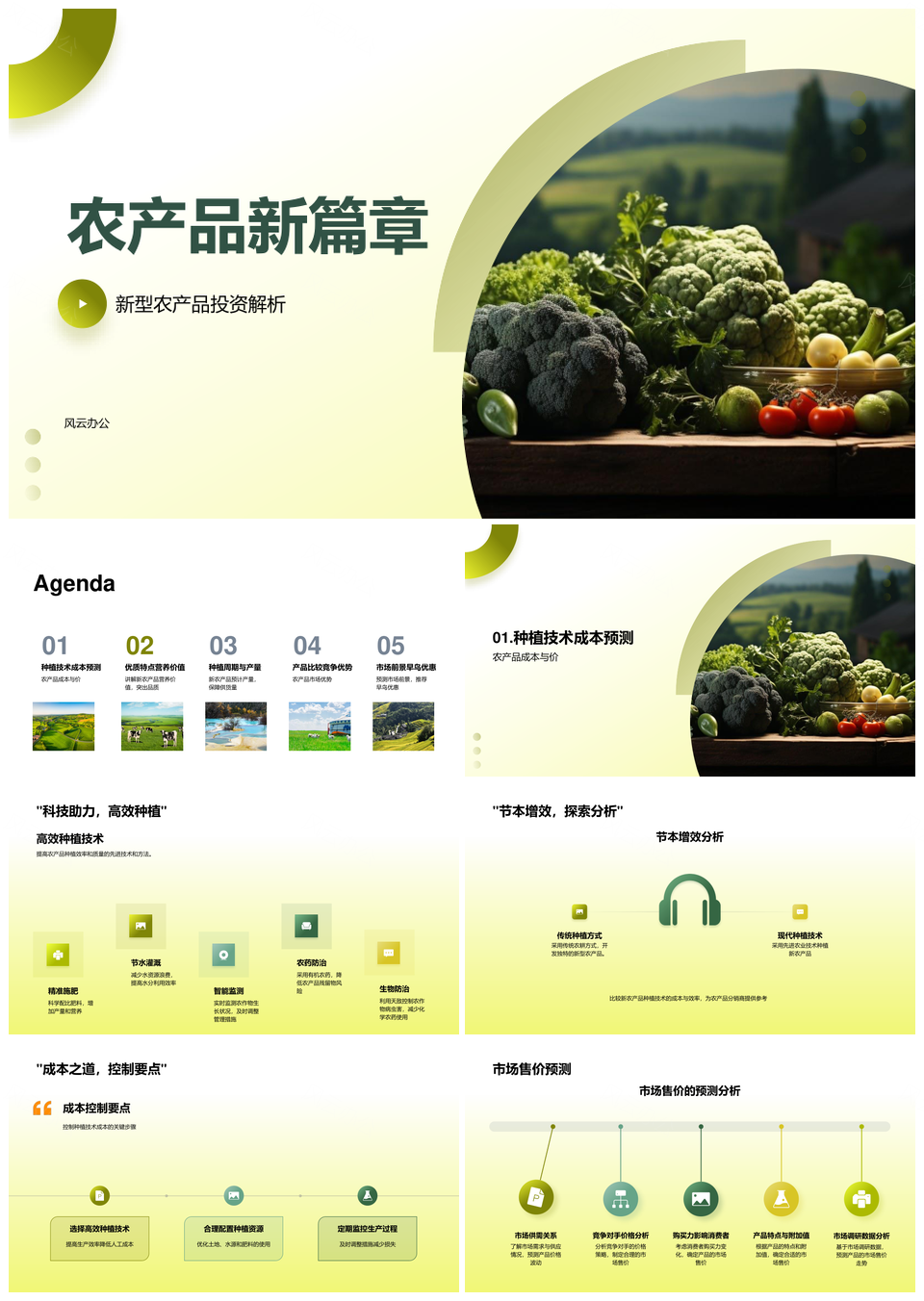 这是一张农产品新篇章新技术降本增效优质营养果蔬PPT模板,包含农产品、新篇章、新技术、降本增效、优质营养、果蔬等主题内容,也可用作农产品新篇章新技术降本增效、新篇章新技术降本增效优质、新技术降本增效优质营养、降本增效优质营养果蔬、农产品新篇章新技术、新篇章新技术降本增效、新技术降本增效优质、降本增效优质营养、优质营养果蔬、农产品新篇章、新篇章新技术、新技术降本增效、降本增效优质、优质营养、营养果蔬等PPT场景使用。 风云办公提供的农产品新篇章新技术降本增效优质营养果蔬PPT模板,下载格式为pptx,一共33页,作品中文字及图均可以修改和编辑,图片更改请在作品中右键图片并更换,文字修改请直接点击文字进行修改。