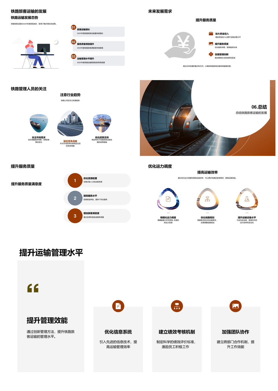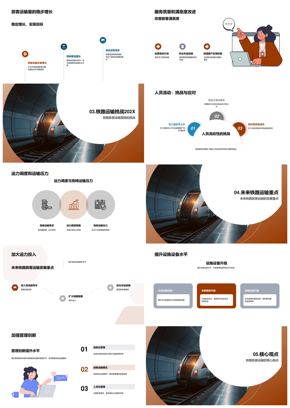 这是一张202X年度铁路旅客运输数据规模趋势总结PPT模板,包含年度、铁路、旅客、运输、数据、规模、趋势、总结等主题内容,也可用作年度铁路旅客运输、铁路旅客运输数据、旅客运输数据规模、运输数据规模趋势、数据规模趋势总结、铁路旅客运输、旅客运输数据、运输数据规模、数据规模趋势、规模趋势总结、年度铁路、铁路运输、运输数据、数据规模、趋势总结等PPT场景使用。 风云办公提供的202X年度铁路旅客运输数据规模趋势总结PPT模板,下载格式为pptx,一共25页,作品中文字及图均可以修改和编辑,图片更改请在作品中右键图片并更换,文字修改请直接点击文字进行修改。