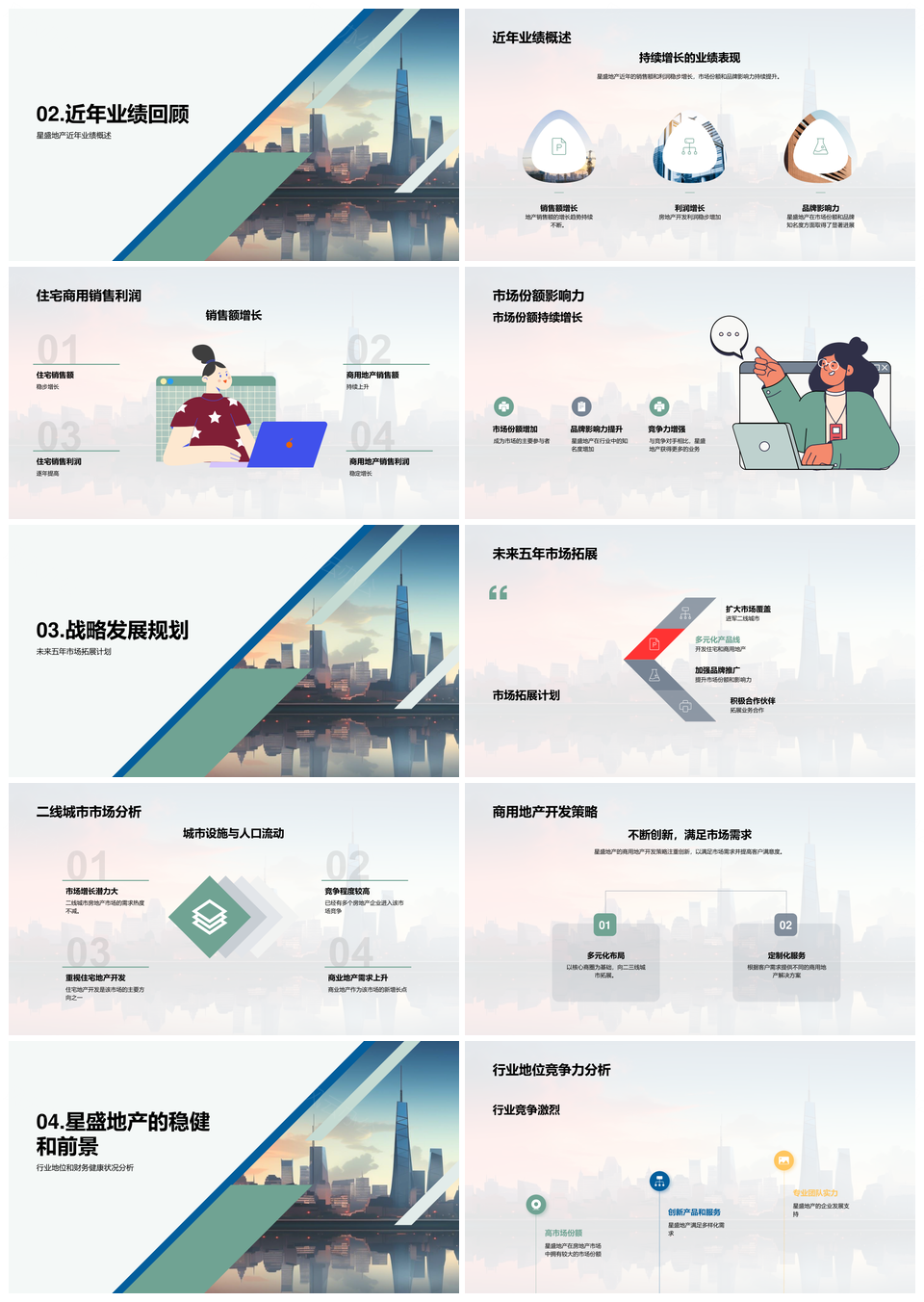 这是一张华丽地产未来投资策略市场拓展二线商用摩天大楼PPT模板,包含华丽地产、未来、投资策略、市场、拓展、二线、商用、摩天大楼等主题内容,也可用作华丽地产未来投资策略市场拓展、未来投资策略市场拓展二线、投资策略市场拓展二线商用、市场拓展二线商用摩天大楼、华丽地产未来投资策略、未来投资策略市场拓展、投资策略市场拓展二线、市场拓展二线商用、二线商用摩天大楼、华丽地产未来、未来投资策略、投资策略市场拓展、市场拓展二线、二线商用、商用摩天大楼等PPT场景使用。 风云办公提供的华丽地产未来投资策略市场拓展二线商用摩天大楼PPT模板,下载格式为pptx,一共25页,作品中文字及图均可以修改和编辑,图片更改请在作品中右键图片并更换,文字修改请直接点击文字进行修改。
