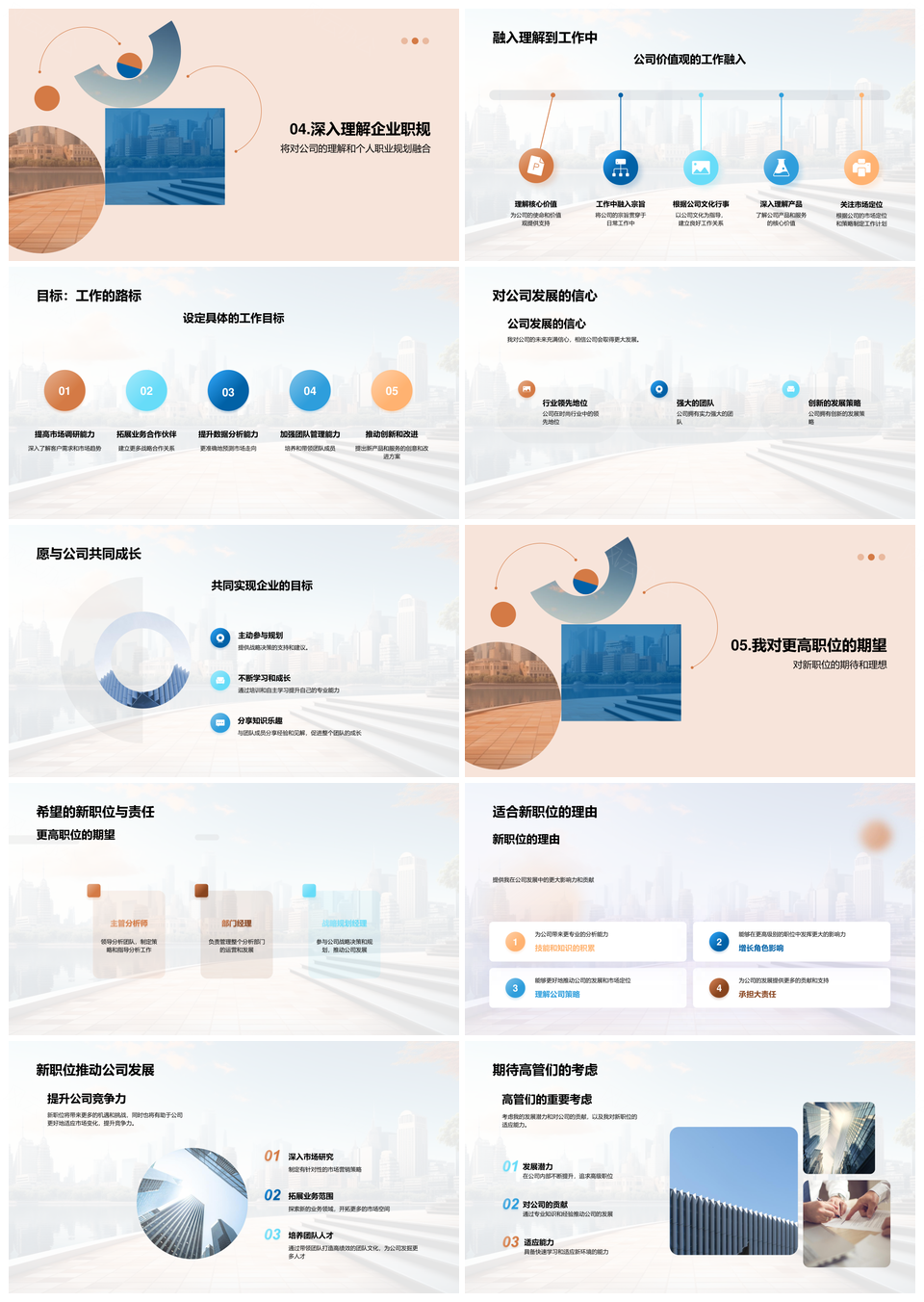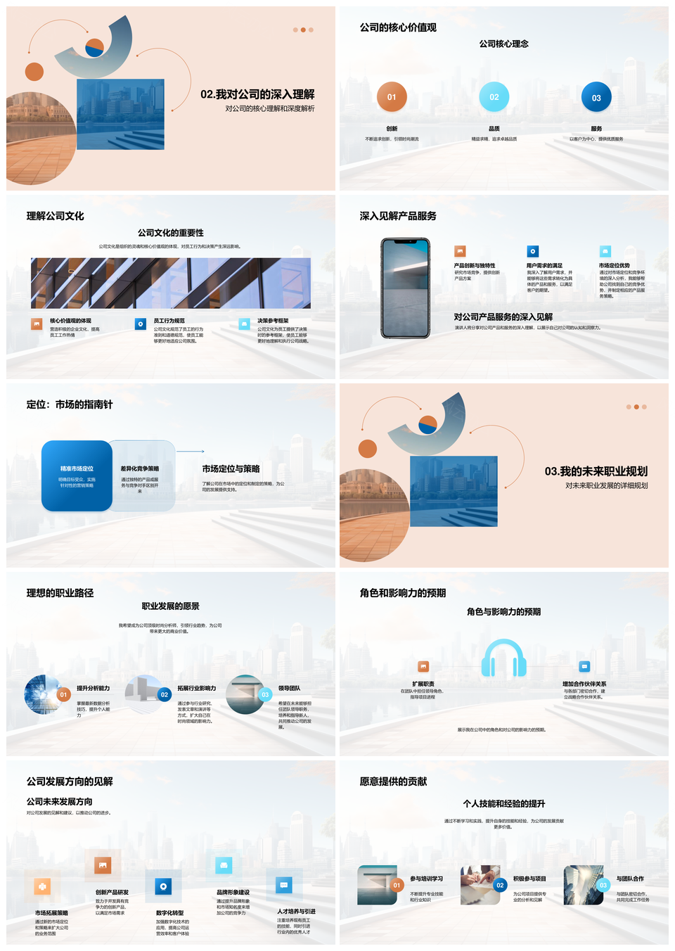 求职定位规划教育经验技能配公司文化公文包PPT模板