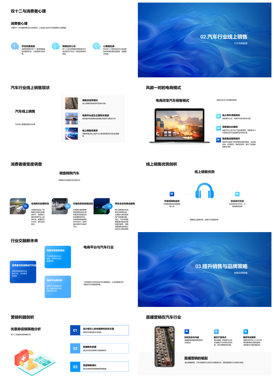 这是一张2025双十二汽车销售提升品牌效益经销商电商营销策划消费行为PPT模板,包含2025、双十二、汽车销售、提升、品牌、效益、经销商、电商、营销、策划、消费、行为等主题内容,也可用作2025双十二汽车销售提升品牌效益、双十二汽车销售提升品牌效益、汽车销售提升品牌效益经销商、提升品牌效益经销商电商营销、品牌效益经销商电商营销策划、经销商电商营销策划消费行为、2025双十二汽车销售电商、双十二汽车销售品牌效益、汽车销售经销商电商营销、电商营销策划消费行为、2025双十二品牌效益、汽车销售提升经销商、提升品牌效益电商、经销商电商消费行为、电商营销消费行为等PPT场景使用。 风云办公提供的2025双十二汽车销售提升品牌效益经销商电商营销策划消费行为PPT模板,下载格式为pptx,一共33页,作品中文字及图均可以修改和编辑,图片更改请在作品中右键图片并更换,文字修改请直接点击文字进行修改。