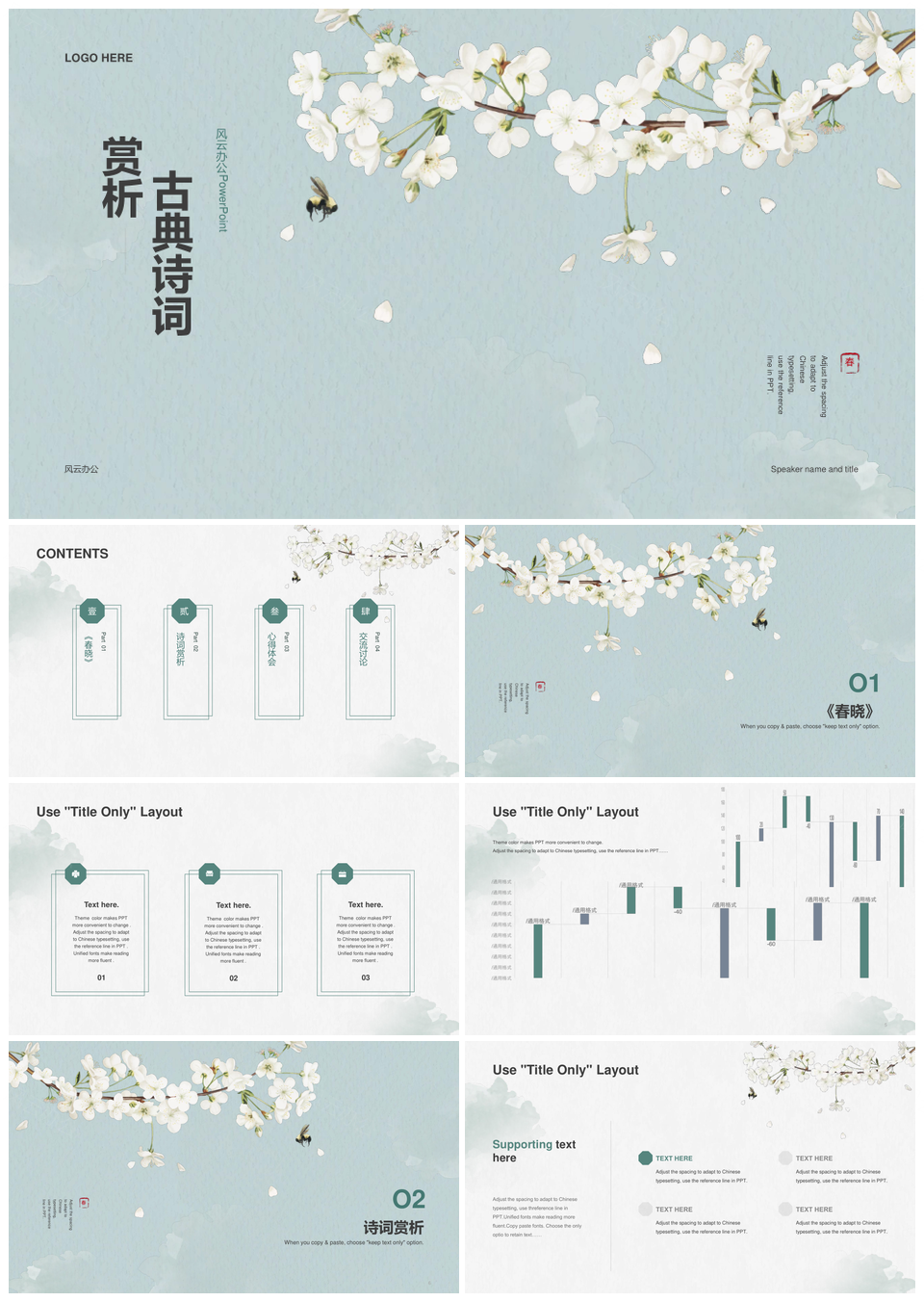 风云办公提供的古风语文诗词课件梨花梅花蜜蜂春韵PPT模板,下载格式为pptx,一共15页,作品中文字及图均可以修改和编辑,图片更改请在作品中右键图片并更换,文字修改请直接点击文字进行修改。