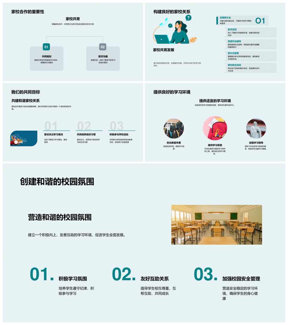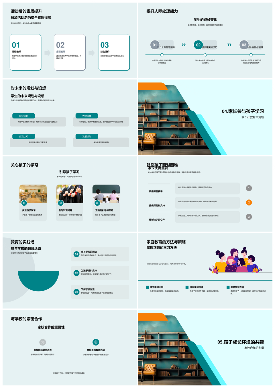 风云办公提供的家校共育筑思维学习成长阶梯PPT模板,下载格式为pptx,一共33页,作品中文字及图均可以修改和编辑,图片更改请在作品中右键图片并更换,文字修改请直接点击文字进行修改。