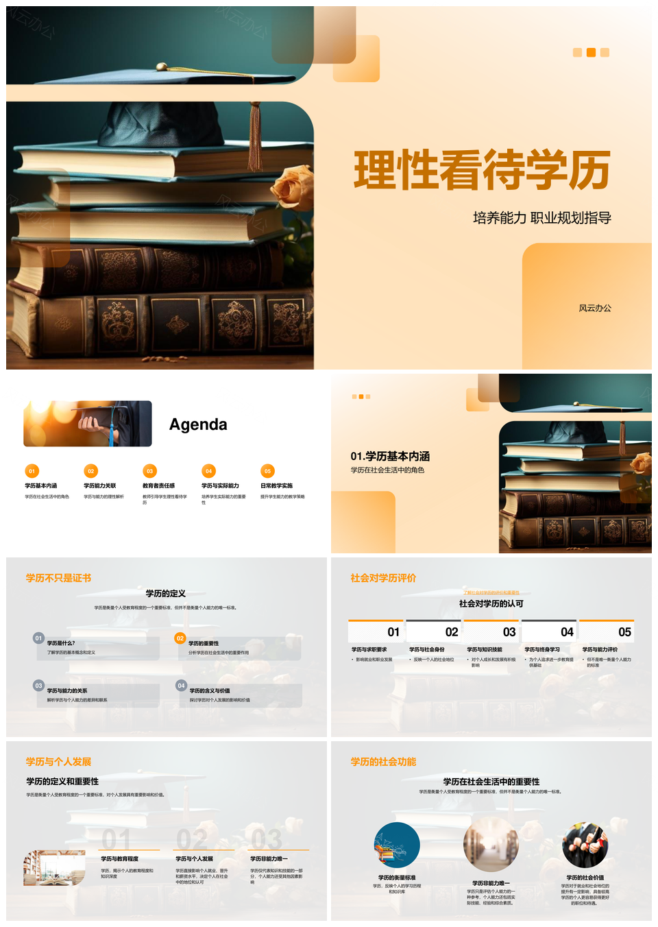 风云办公提供的理性看待学历能力培养与育才责任PPT模板,下载格式为pptx,一共33页,作品中文字及图均可以修改和编辑,图片更改请在作品中右键图片并更换,文字修改请直接点击文字进行修改。