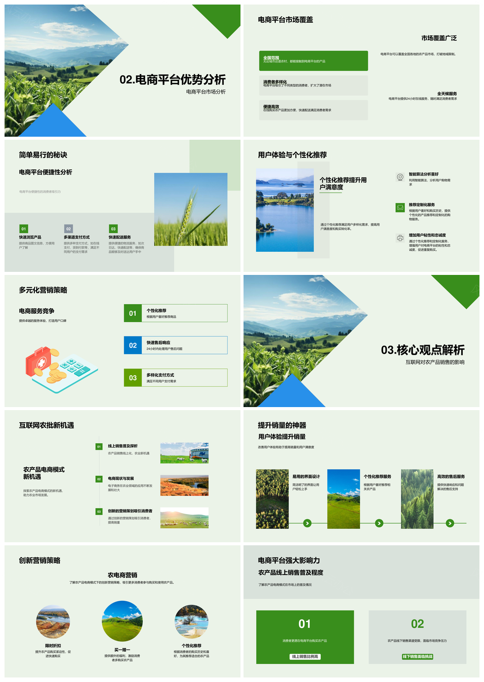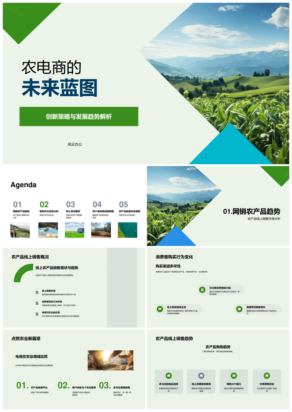 这是一张农电商创新策略驱动农产品线上销售发展PPT模板,包含农电商、创新策略、驱动、农产品、线上销售、发展等主题内容,也可用作农电商创新策略驱动、创新策略驱动农产品、驱动农产品线上销售、农产品线上销售发展、农电商创新策略、创新驱动农产品线上、策略驱动线上销售、农产品线上销售、农电商驱动发展、线上销售发展、创新策略驱动、农电商线上销售、驱动农产品发展、农产品线上发展、创新策略发展等PPT场景使用。 风云办公提供的农电商创新策略驱动农产品线上销售发展PPT模板,下载格式为pptx,一共28页,作品中文字及图均可以修改和编辑,图片更改请在作品中右键图片并更换,文字修改请直接点击文字进行修改。