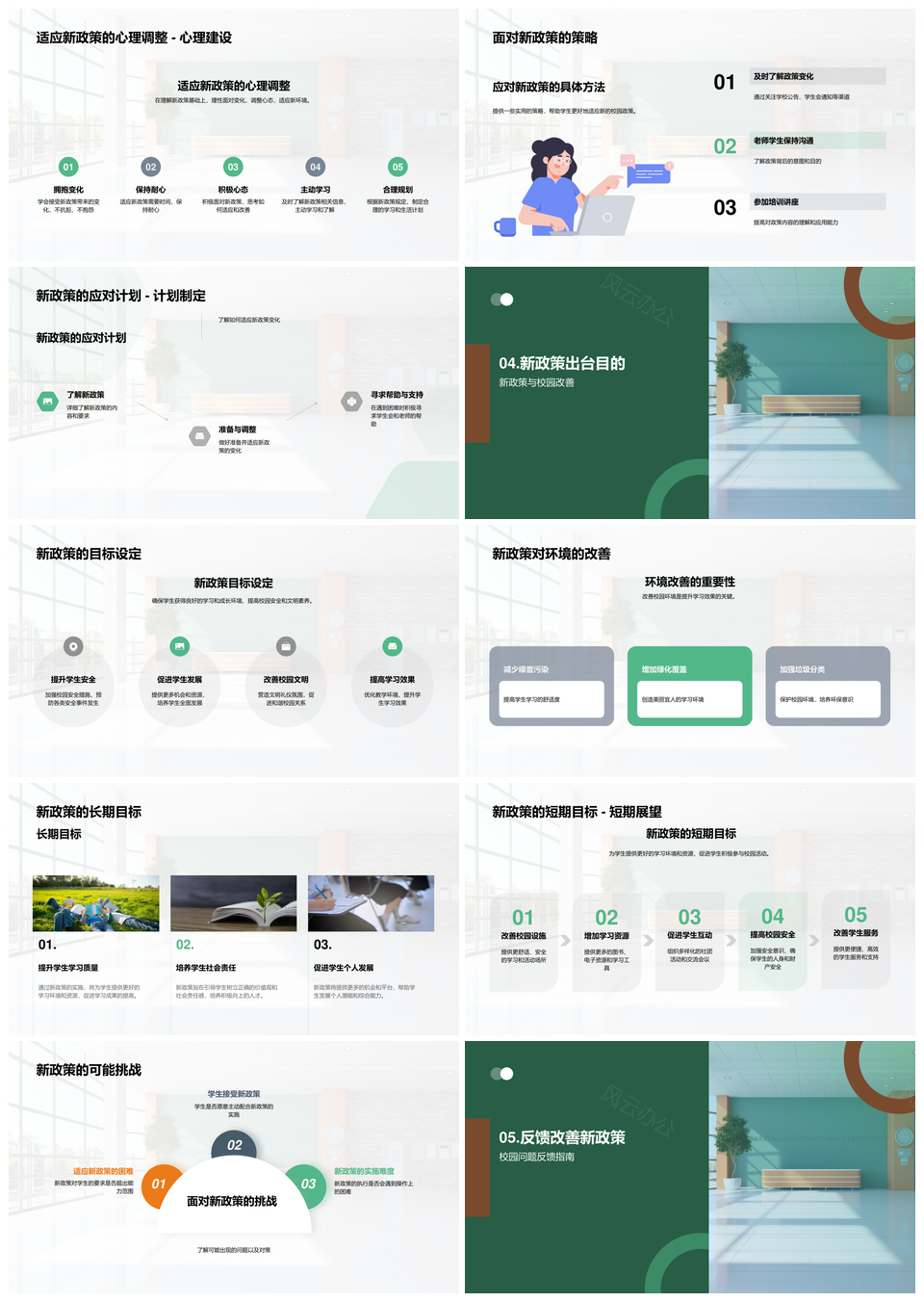 这是一张校园新政策背景需求影响与适应建议解读PPT模板,包含校园、新政策、背景、需求、影响、适应、建议、解读等主题内容,也可用作校园新政策背景需求、新政策背景需求影响、背景需求影响适应、需求影响适应建议、影响适应建议解读、校园新政策背景、新政策背景需求、背景需求影响、需求影响适应、影响适应建议、适应建议解读、校园新政策、新政策背景、背景需求、需求影响等PPT场景使用。 风云办公提供的校园新政策背景需求影响与适应建议解读PPT模板,下载格式为pptx,一共33页,作品中文字及图均可以修改和编辑,图片更改请在作品中右键图片并更换,文字修改请直接点击文字进行修改。