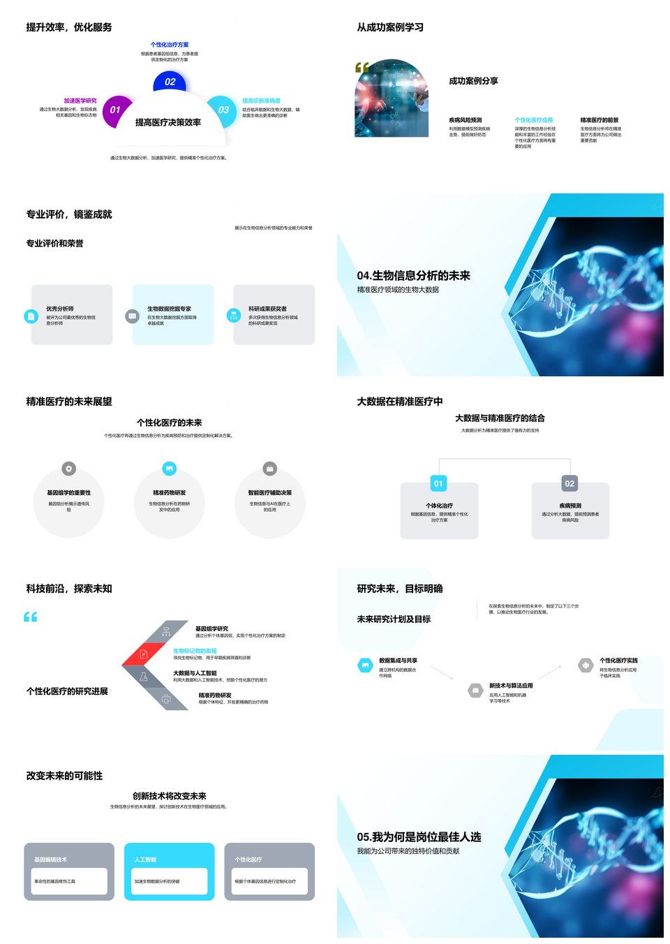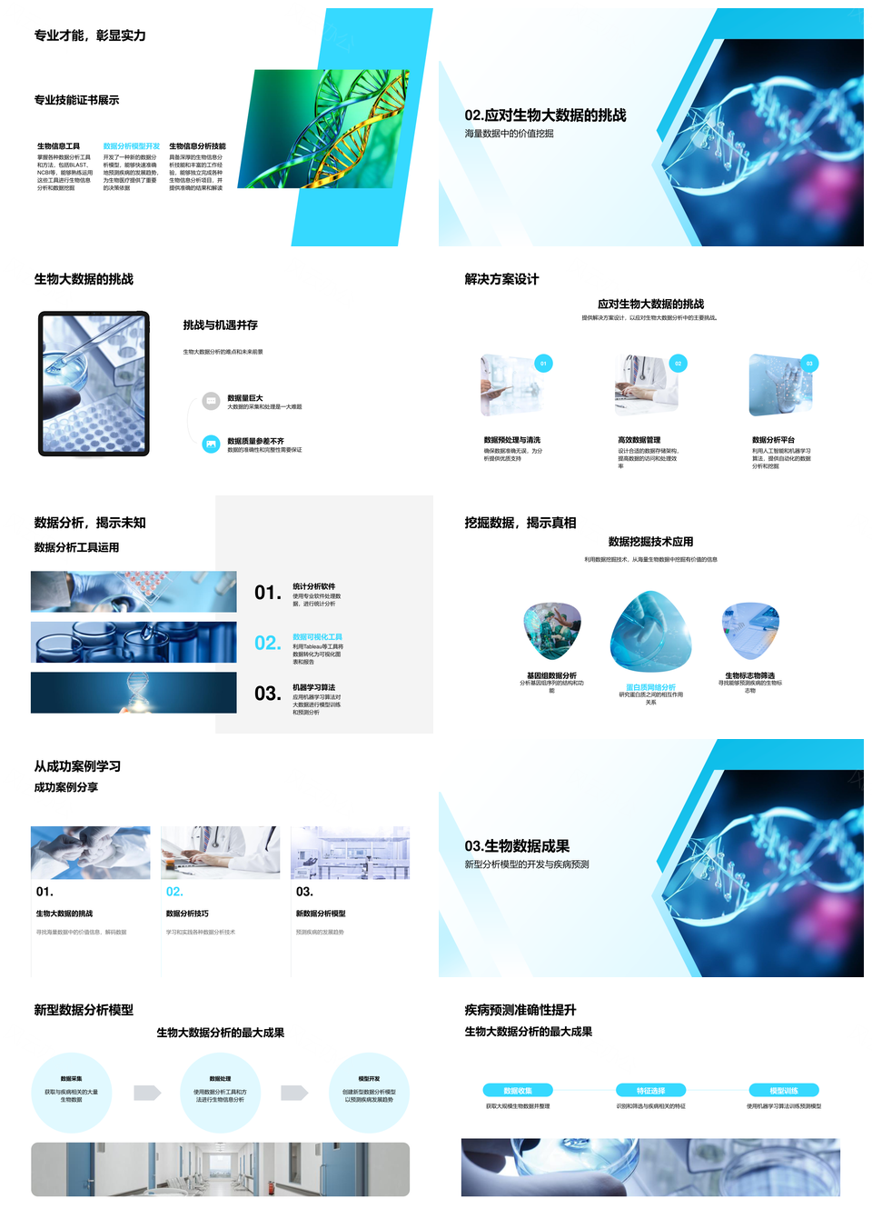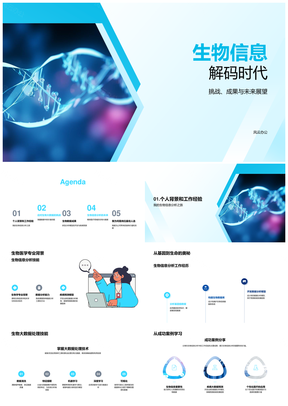 风云办公提供的生物大数据解码精准医疗与疾病预测PPT模板,下载格式为pptx,一共33页,作品中文字及图均可以修改和编辑,图片更改请在作品中右键图片并更换,文字修改请直接点击文字进行修改。