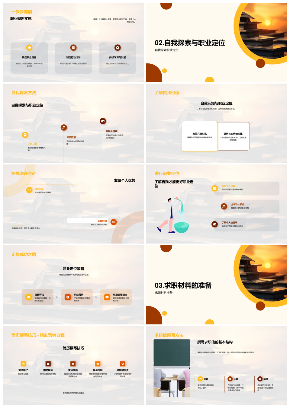 风云办公提供的职业规划求职材料面试准备与定位技巧PPT模板,下载格式为pptx,一共33页,作品中文字及图均可以修改和编辑,图片更改请在作品中右键图片并更换,文字修改请直接点击文字进行修改。