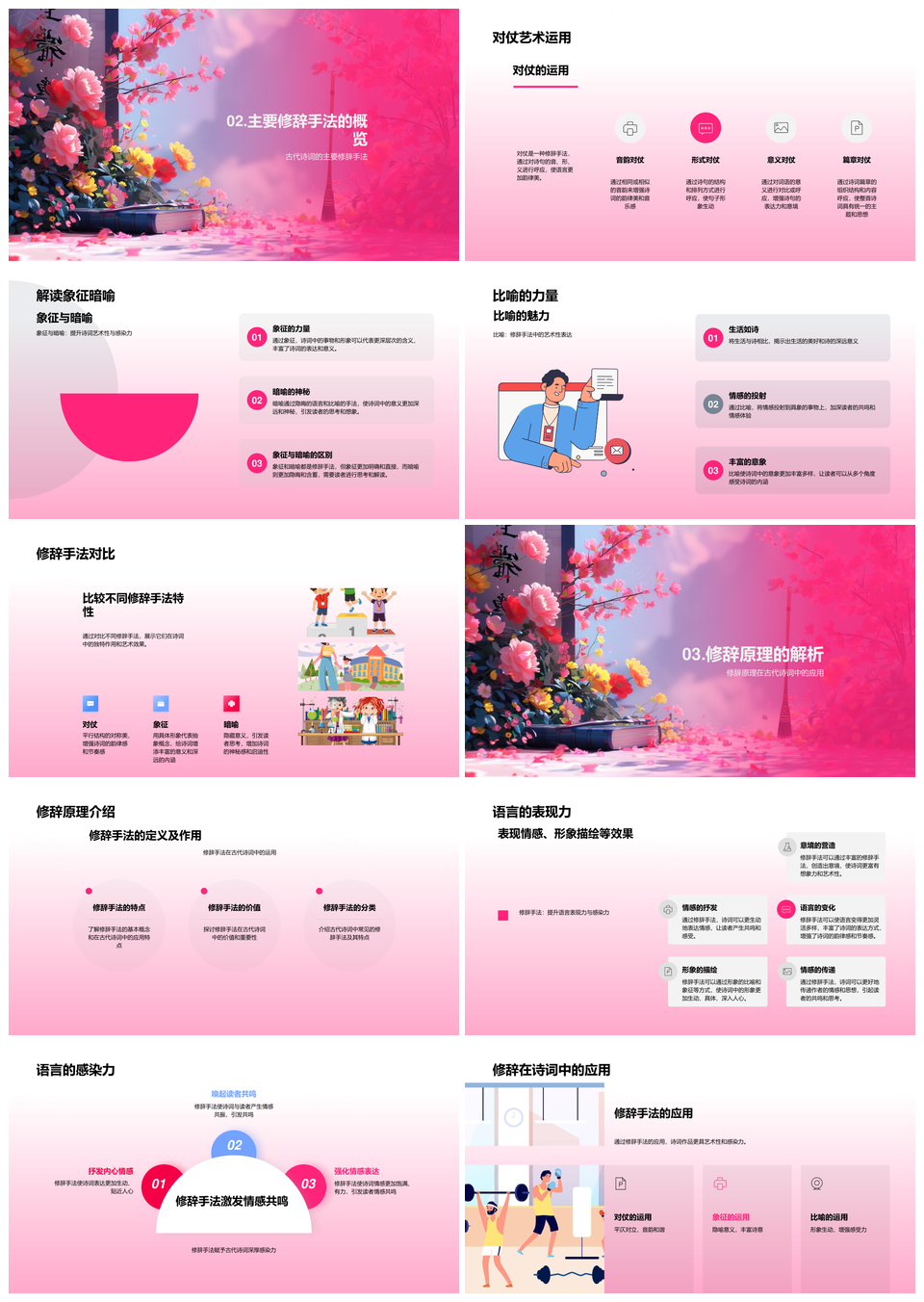风云办公提供的高中古诗修辞鉴赏对仗象征暗喻课件,下载格式为pptx,一共28页,作品中文字及图均可以修改和编辑,图片更改请在作品中右键图片并更换,文字修改请直接点击文字进行修改。