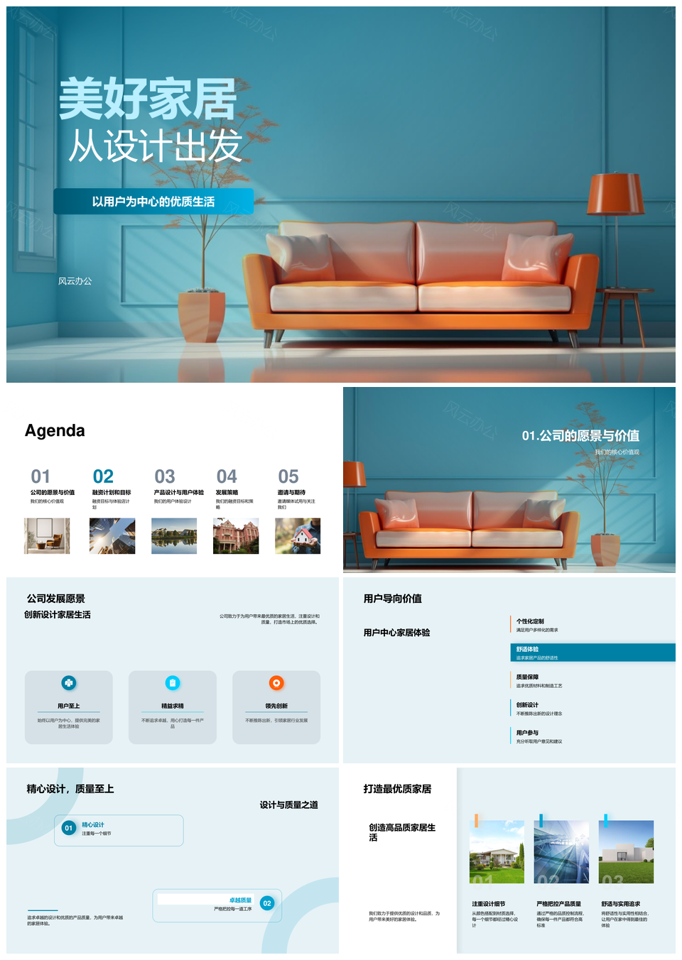 风云办公提供的用户为核心设计创领美好家居优质生活PPT模板,下载格式为pptx,一共33页,作品中文字及图均可以修改和编辑,图片更改请在作品中右键图片并更换,文字修改请直接点击文字进行修改。