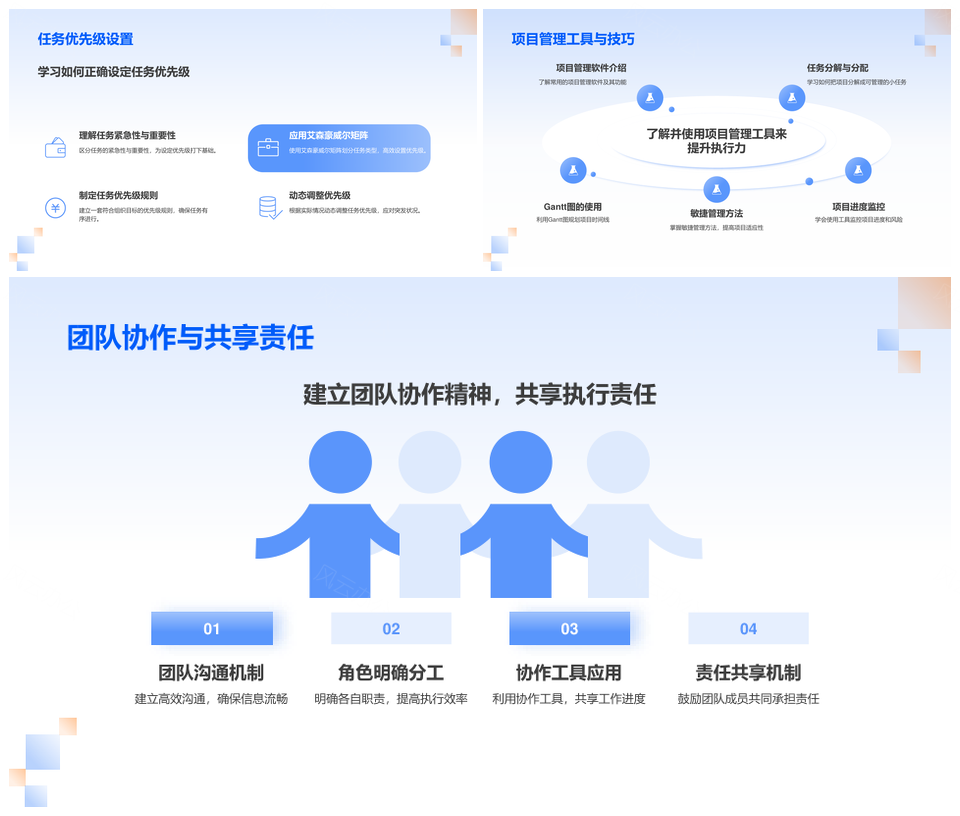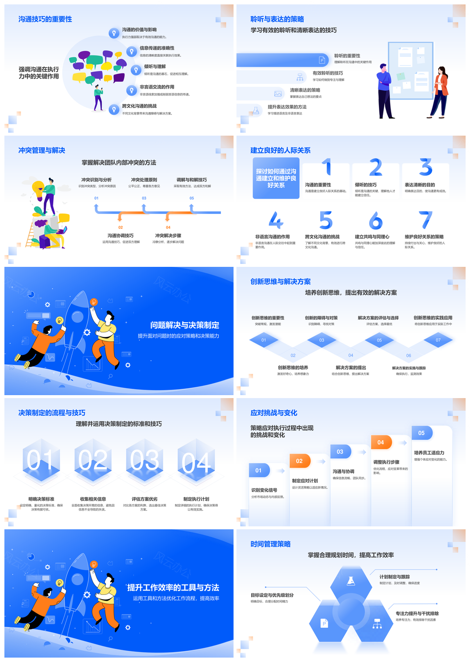 风云办公提供的员工执行力管理培训目标团队效率提升PPT模板,下载格式为pptx,一共21页,作品中文字及图均可以修改和编辑,图片更改请在作品中右键图片并更换,文字修改请直接点击文字进行修改。