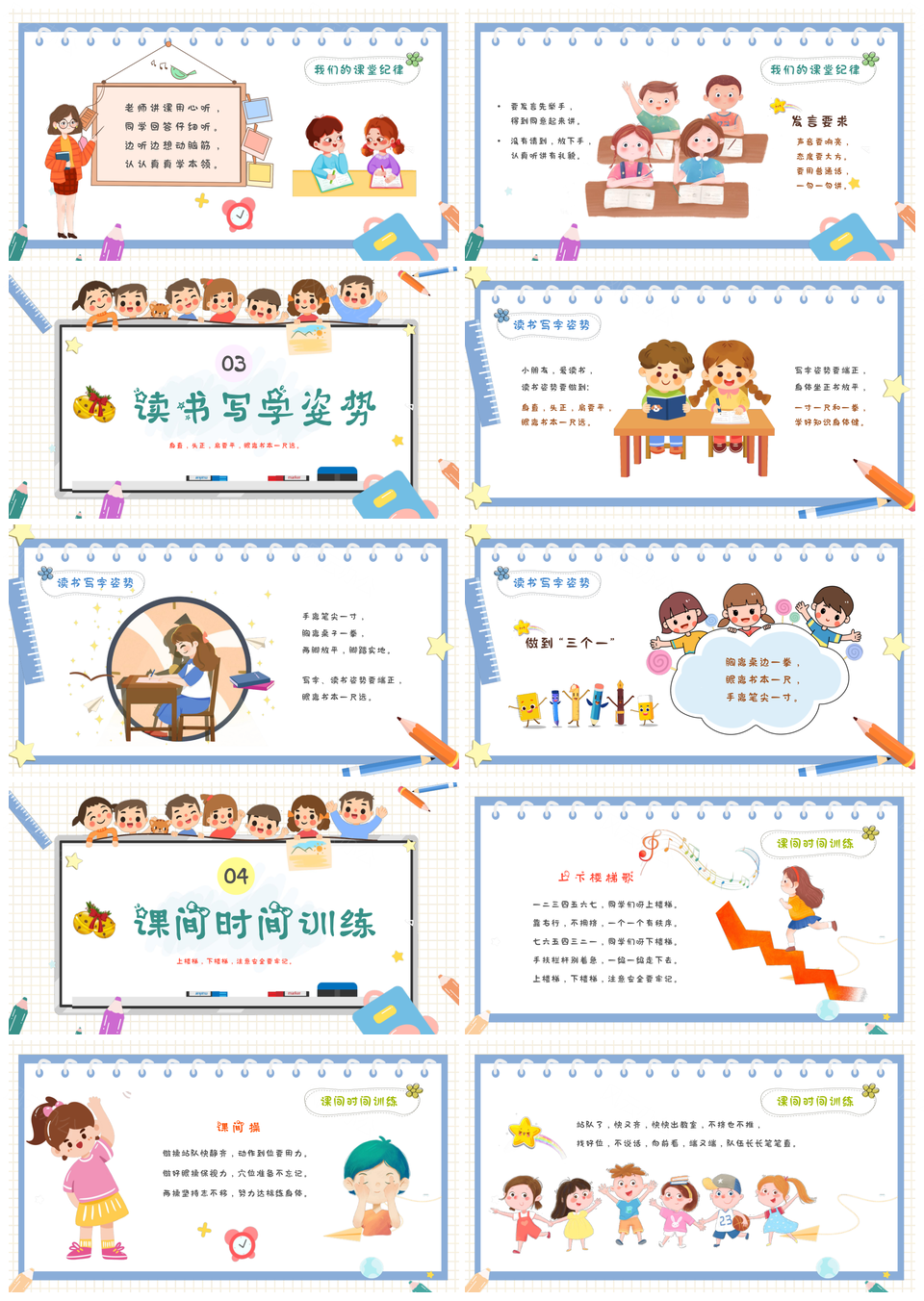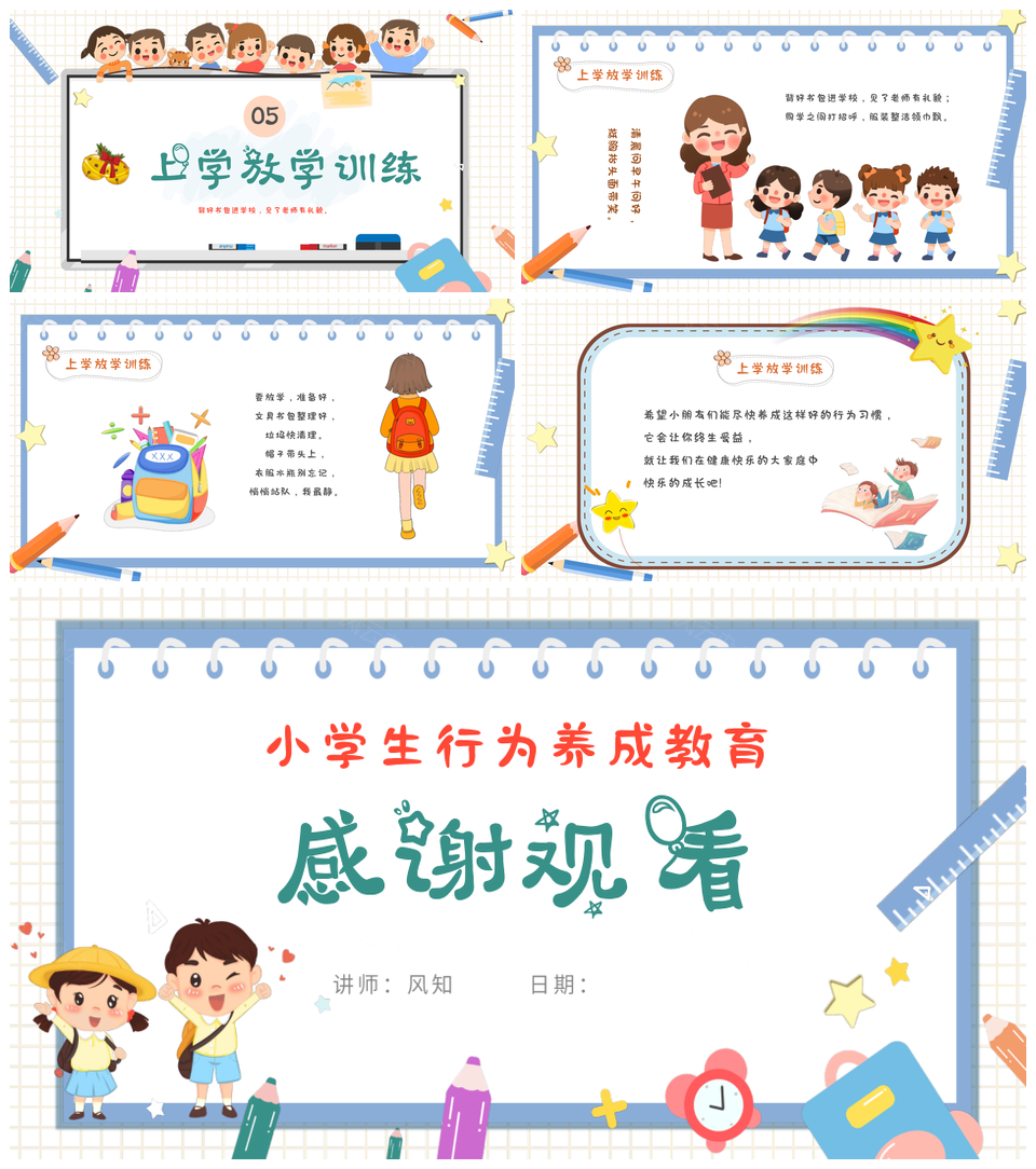 风云办公提供的彩色卡通小学生行为习惯养成主题班会PPT模板,下载格式为pptx,一共23页,作品中文字及图均可以修改和编辑,图片更改请在作品中右键图片并更换,文字修改请直接点击文字进行修改。